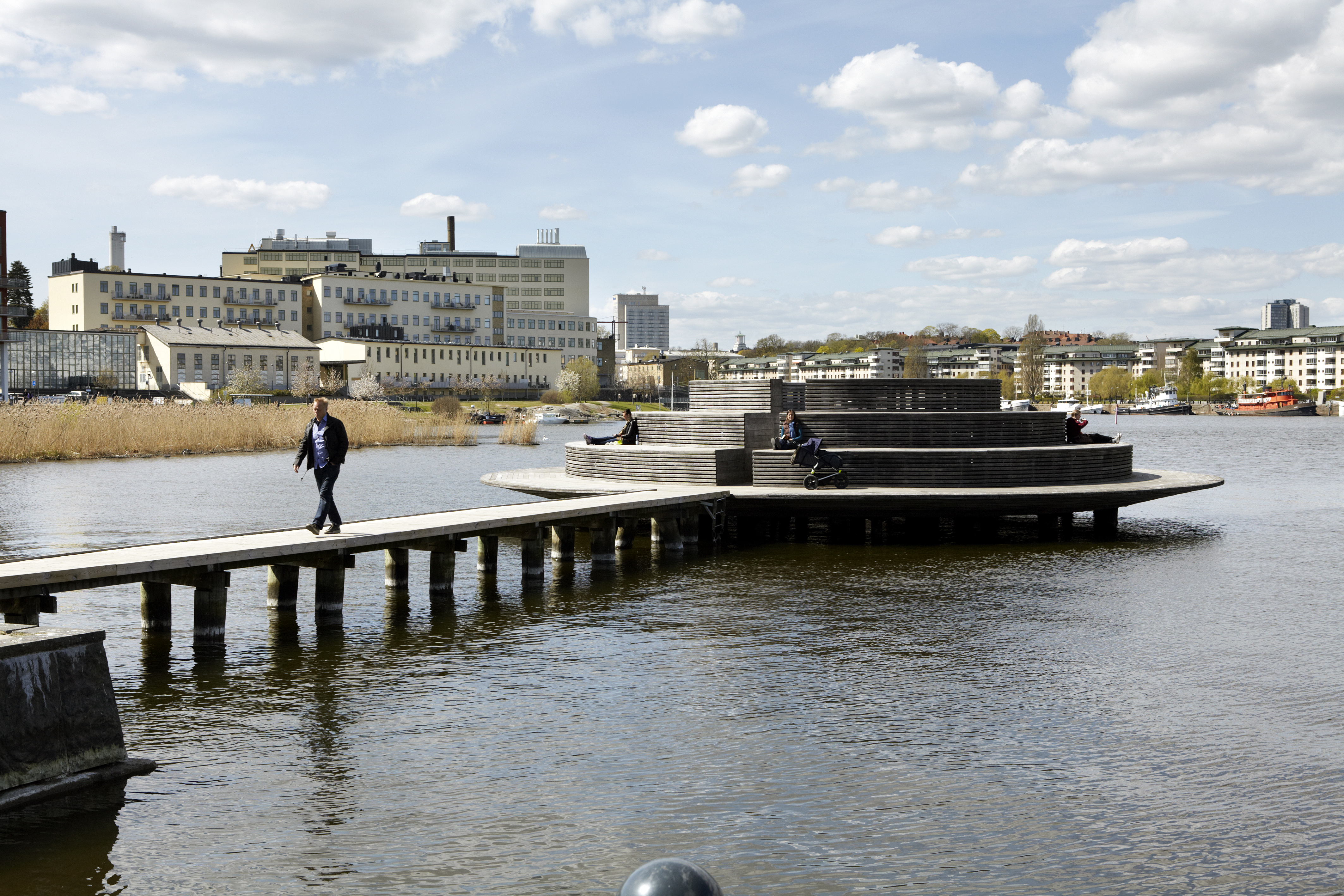 - Beskrivning: Brygga, bänkar, trappor, kaj. Nybyggnation, Hammarby Sjöstad.