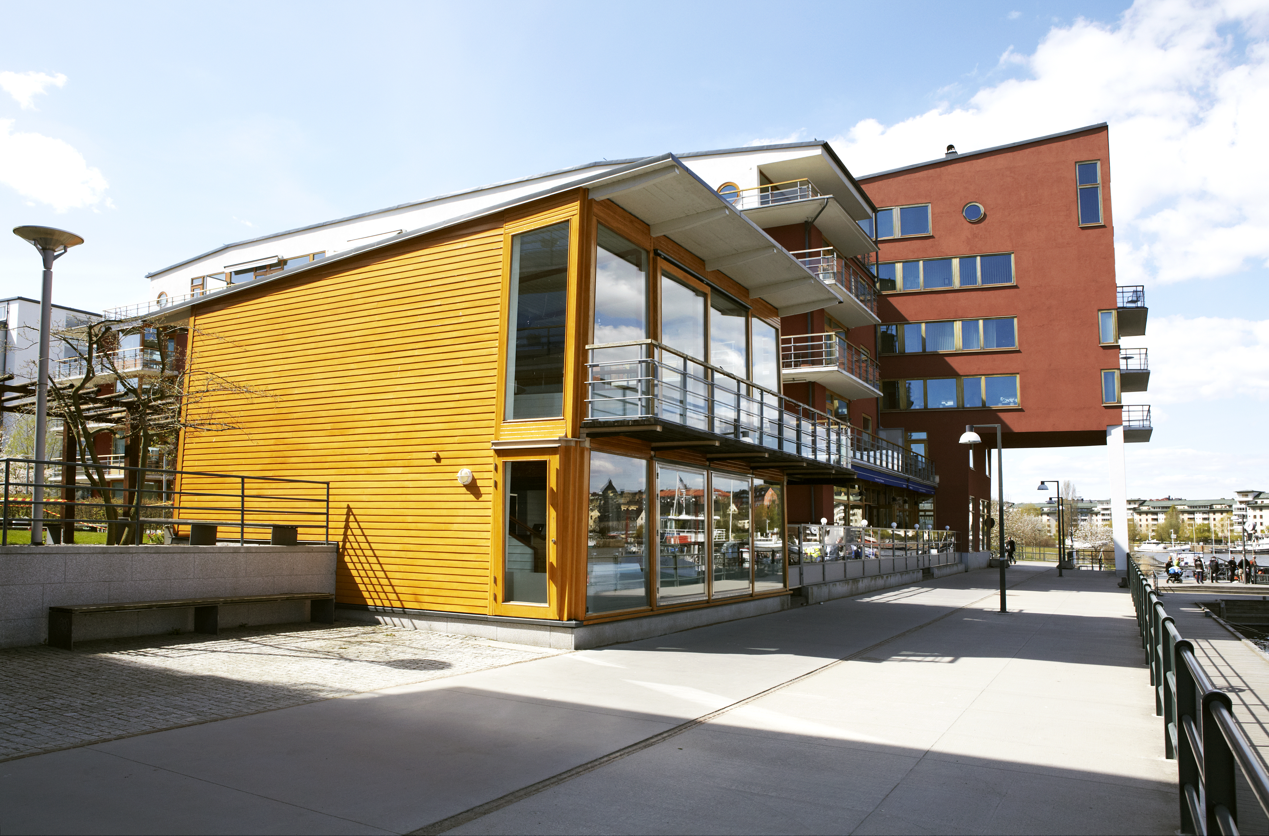 - Beskrivning: Hus i trä, fasad. Nybyggnation, Hammarby Sjöstad.