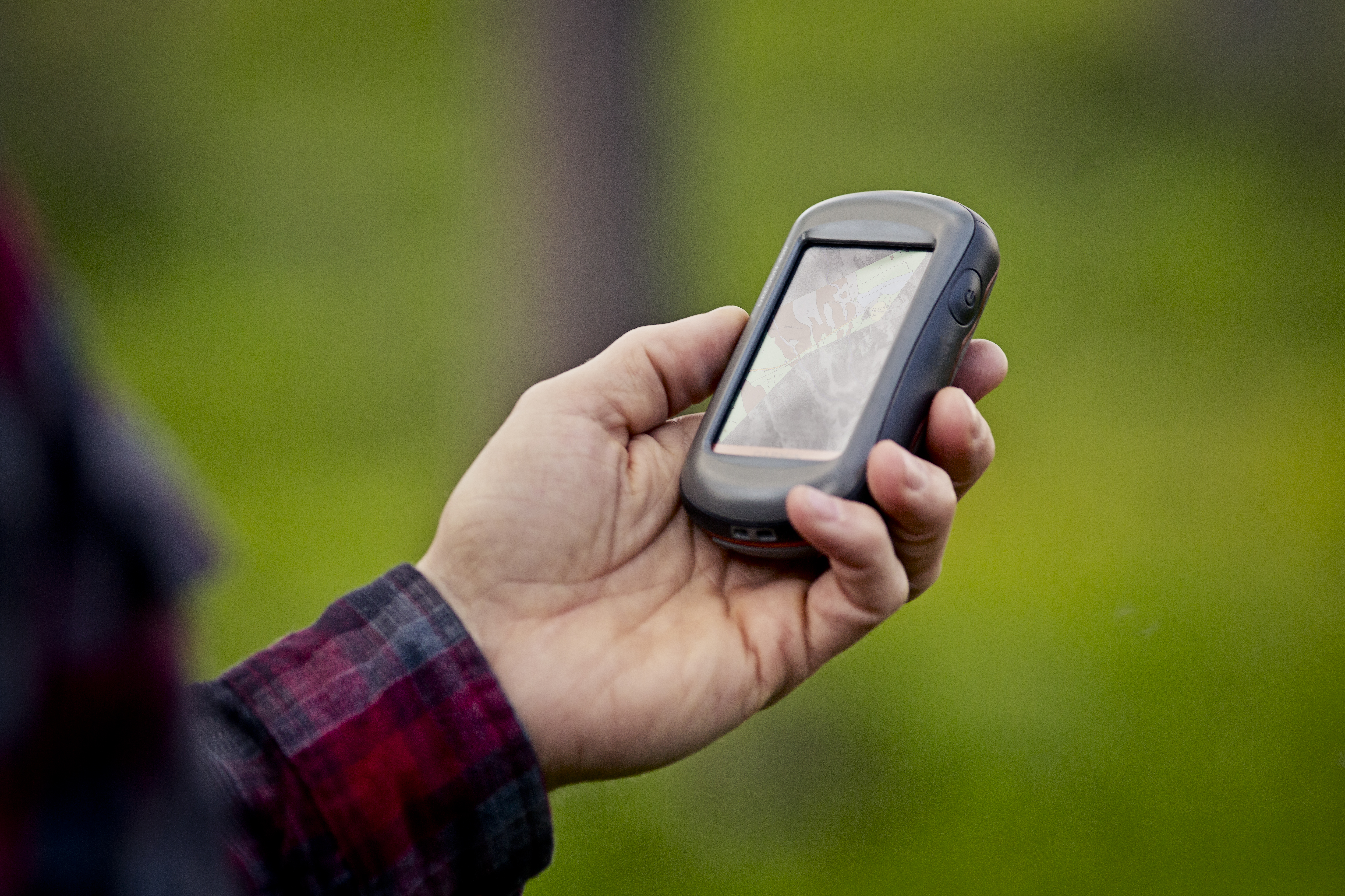 - Beskrivning: Virkesköpare, planerare, skogsägare i skogen med GPS