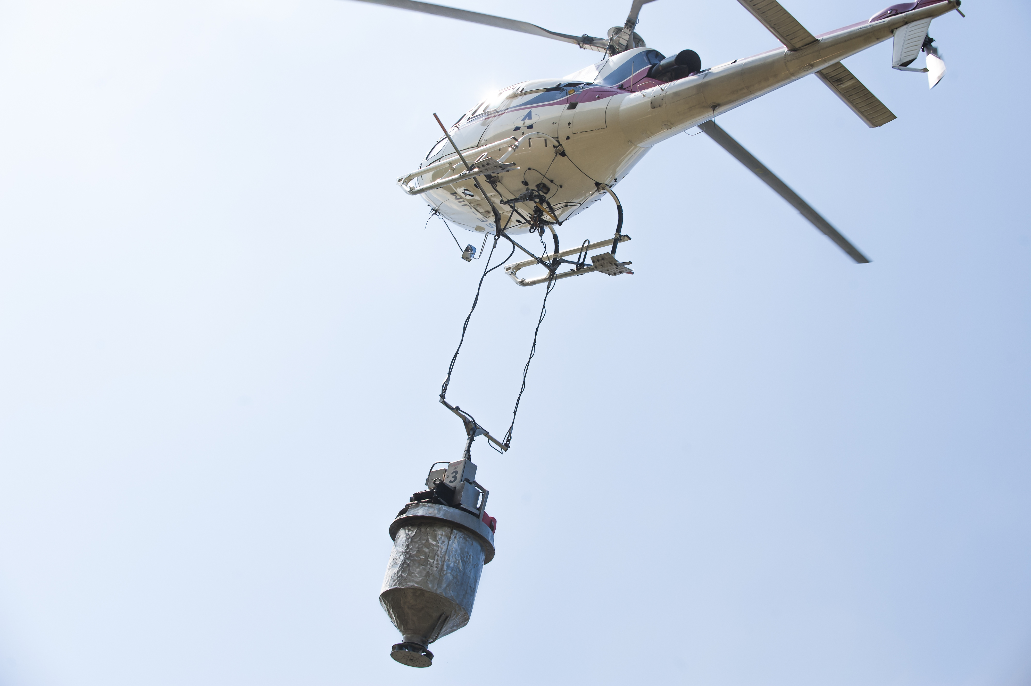 - Beskrivning: Gödsling, skogsgödsling. Airlift Helicopter utför gödsling på Sveaskogs marker.