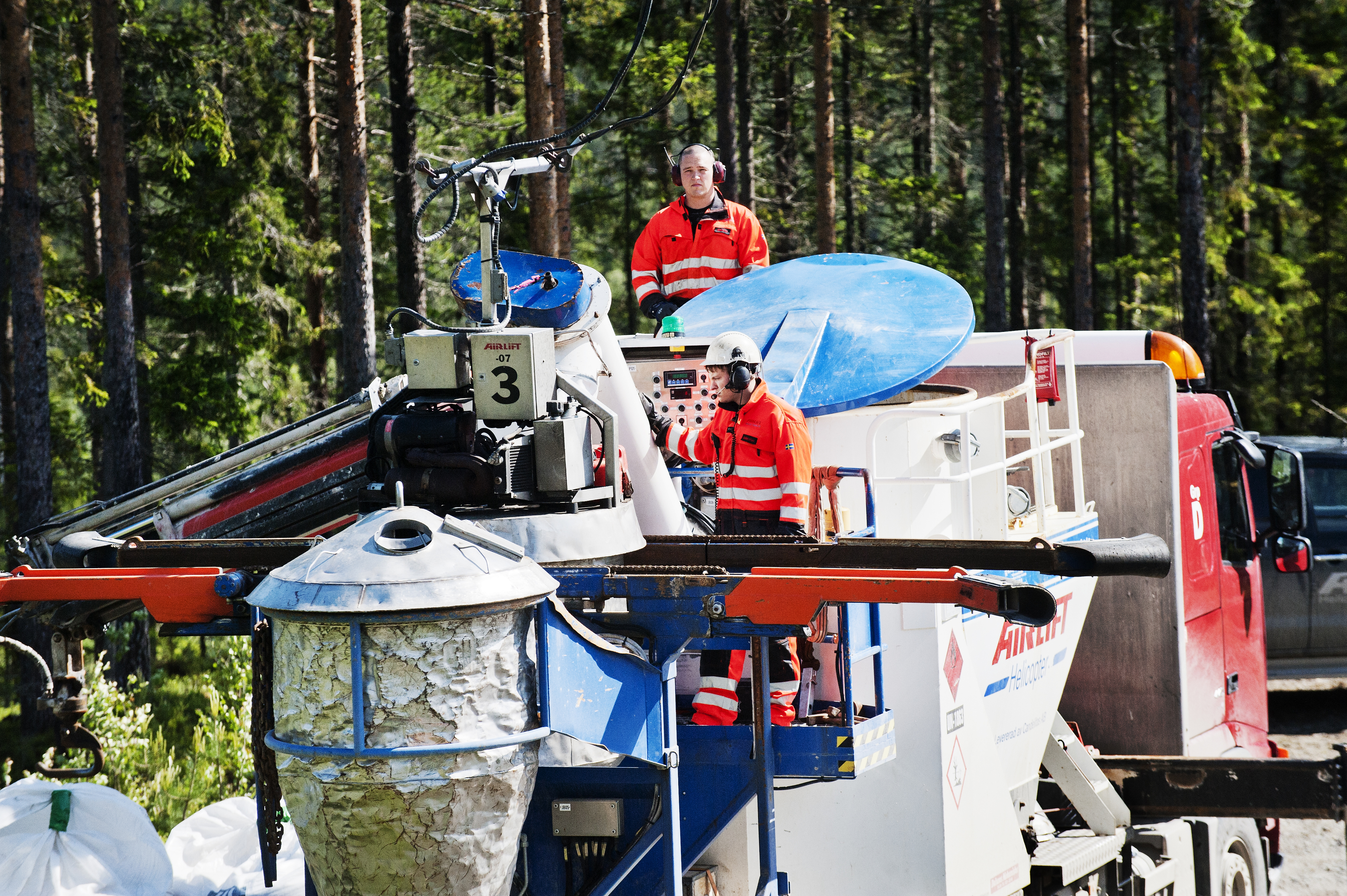 - Beskrivning: Gödsling, skogsgödsling. Airlift Helicopter utför gödsling på Sveaskogs marker.