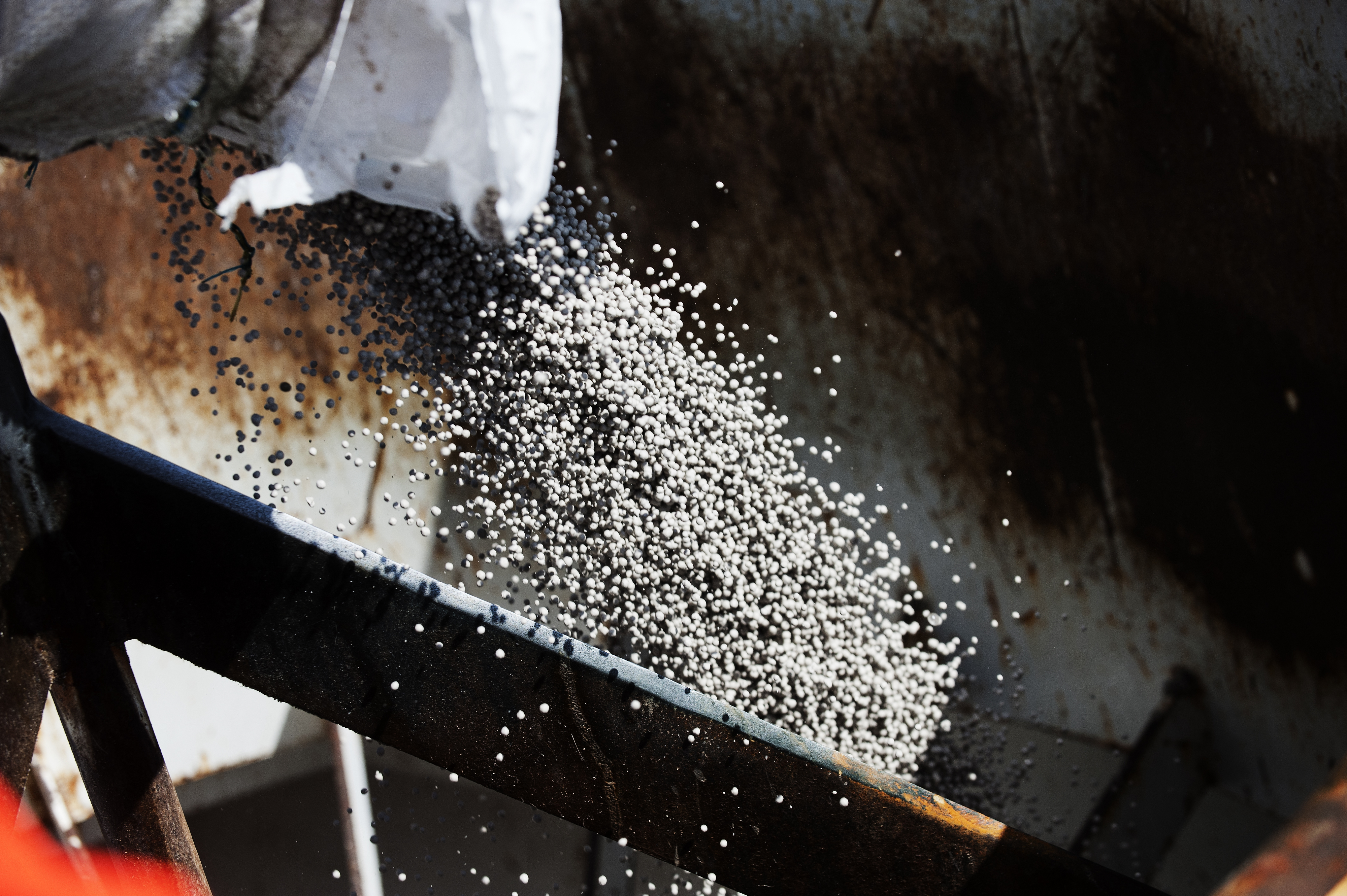 - Beskrivning: Gödsling, skogsgödsling. Airlift Helicopter utför gödsling på Sveaskogs marker. Närbild på gödslingsmedlet CAN.