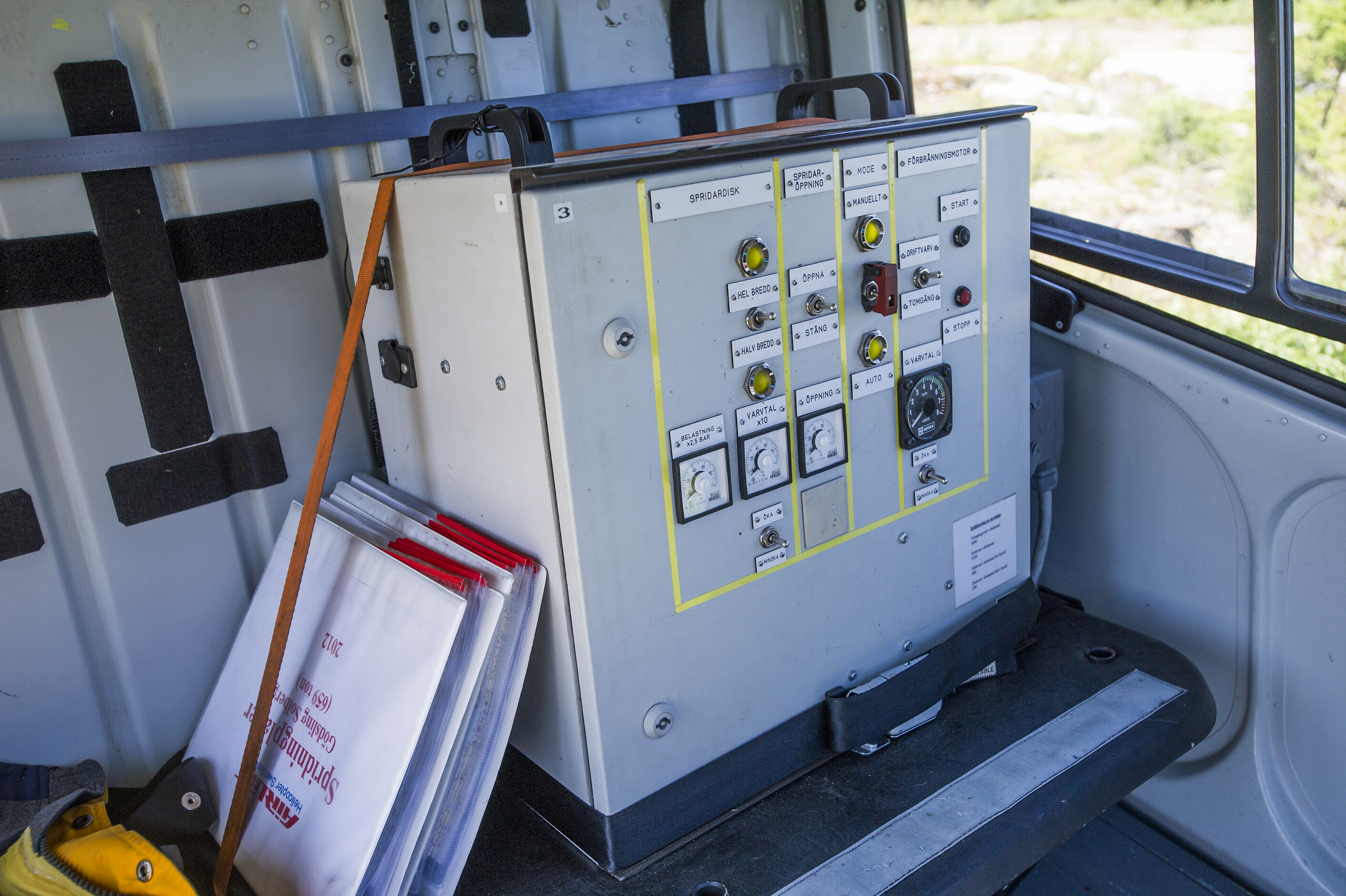- Beskrivning: Gödsling, skogsgödsling. Airlift Helicopter utför gödsling på Sveaskogs marker. Styrskåp, reglage.