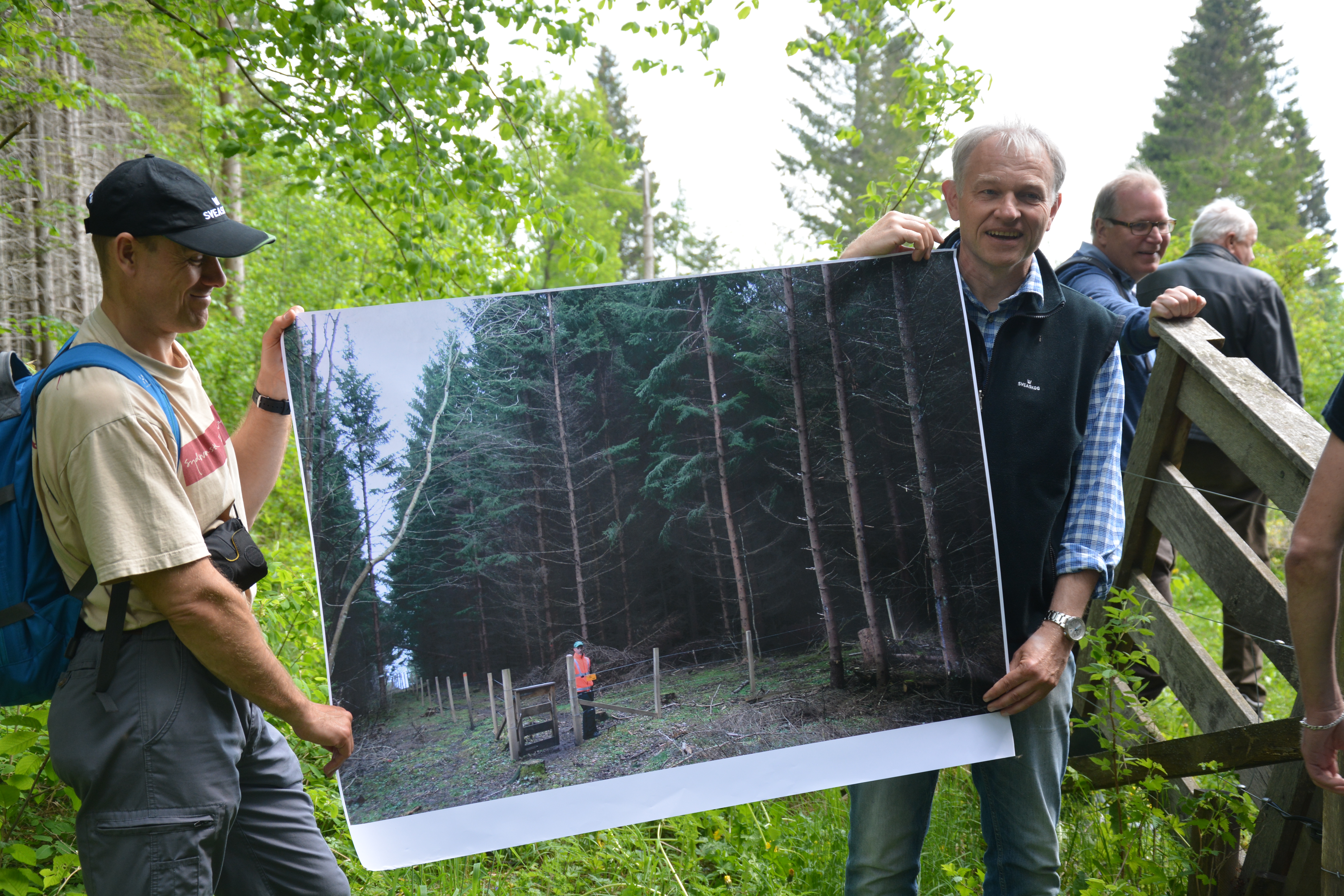- Beskrivning: Peter Ask och Olof Johansson håller upp en bild hur det såg ut tidigare, innan skötselåtgärder