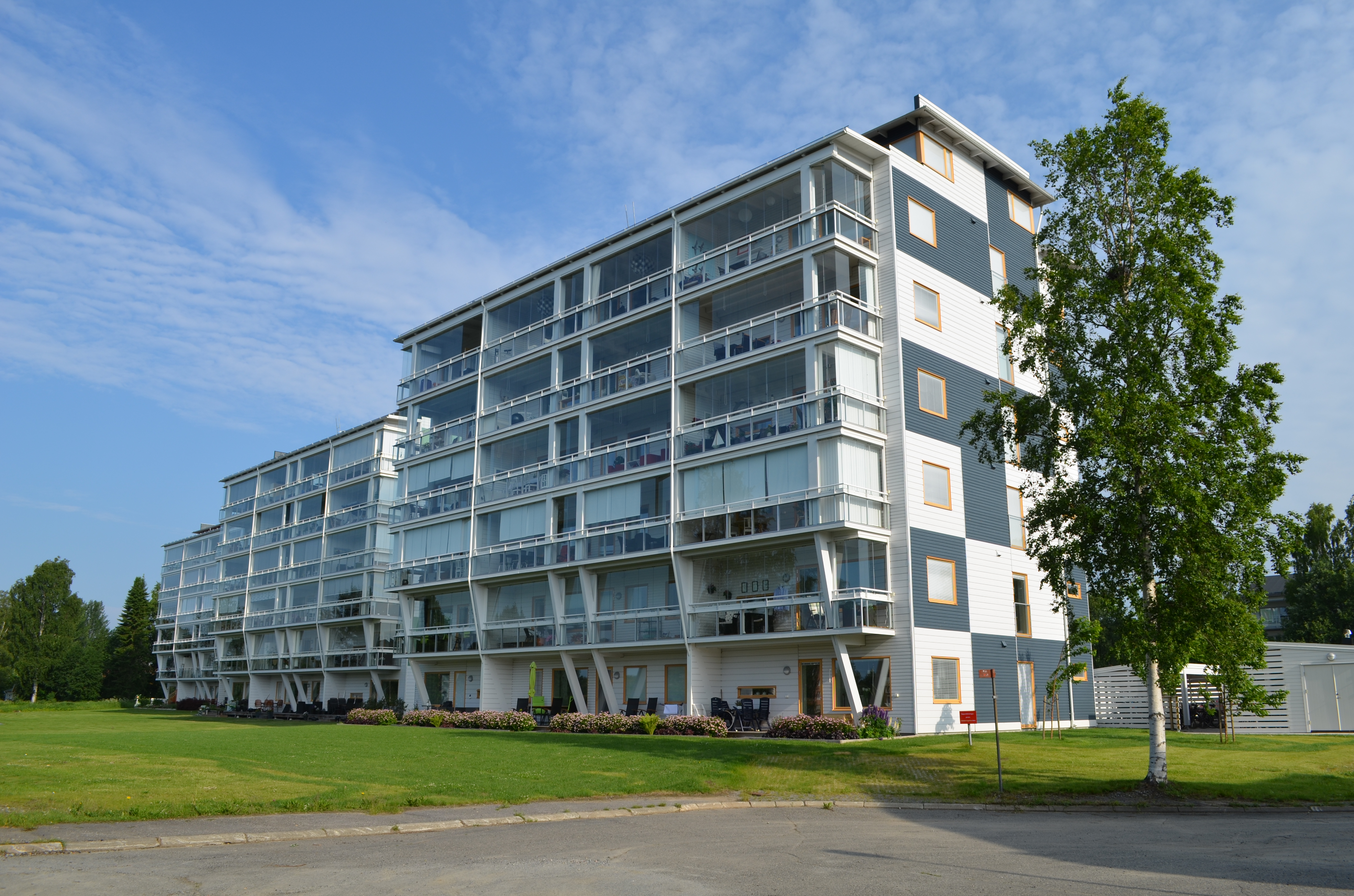 - Beskrivning: Samarbete mellan Sveaskog och Martinsons, träbyggnation, trähus, produkter och tjänster, slutanvändning av träråvara, bostad, lägenhet, limträpanel, Miljöbyggnad guld, Martinsons, bostadsområde.
