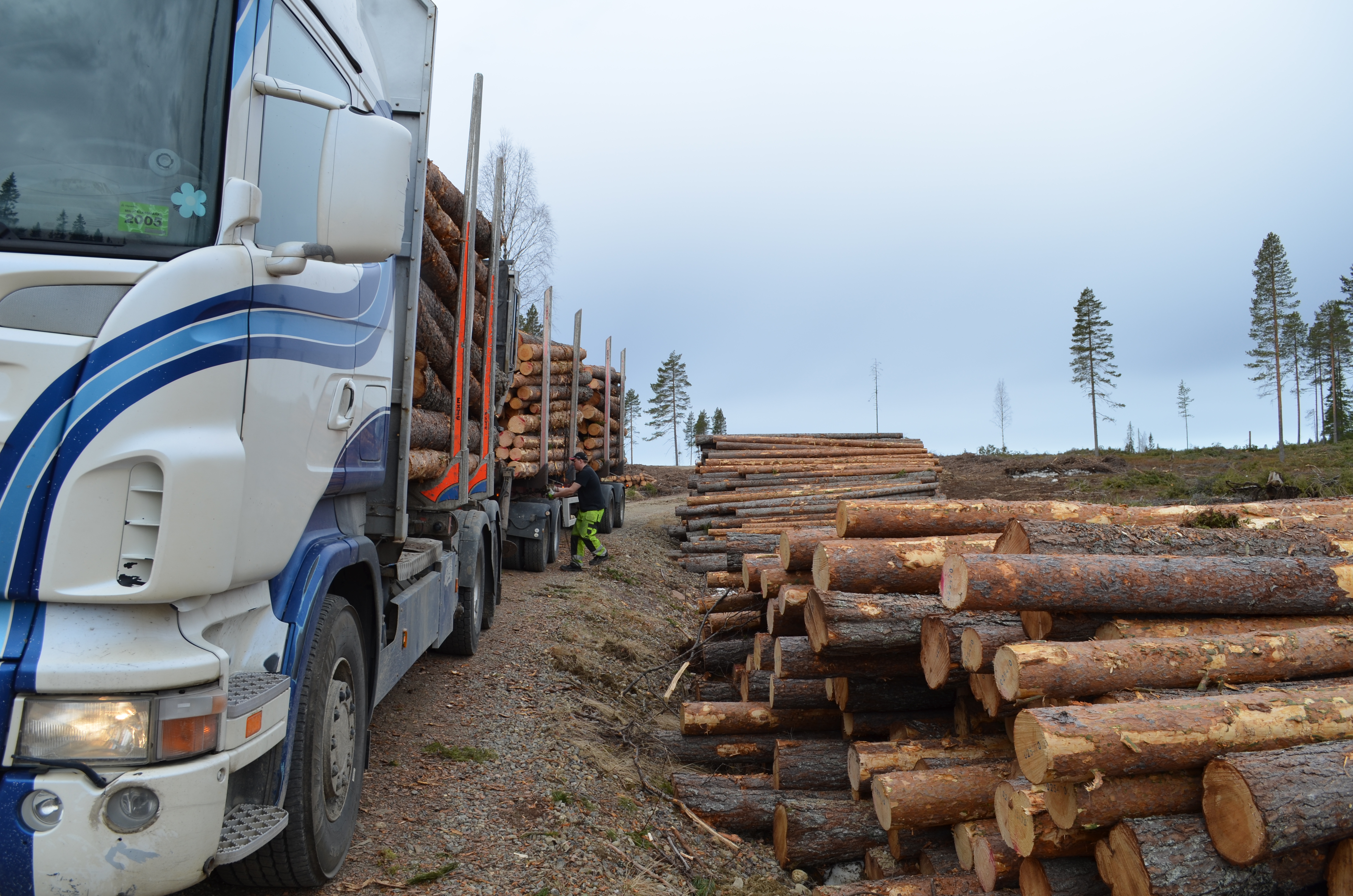 - Beskrivning: logistik, virkesbil, lastbil, leverans, transport, timmertransport, transportering av virke, Brattby såg exkursion, samarbete mellan Sveaskog och Brattby Sågverks AB, trä, produkter och tjänster,