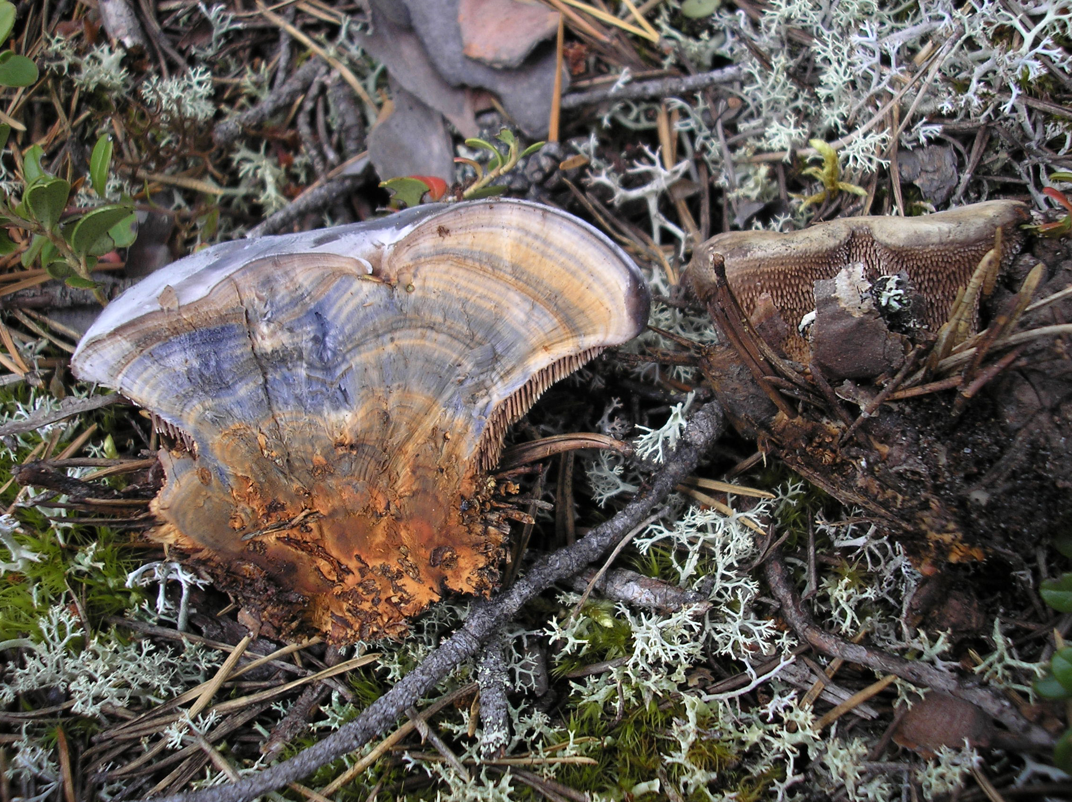 - Beskrivning: Hydnellum caeruleum, Svamp, fungi, svampdjur, spongier, mossa