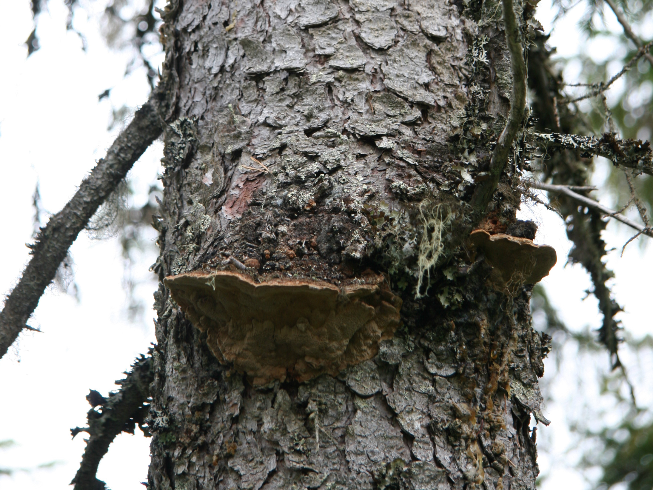 • Beskrivning: Phellinus chrysoloma, Svamp, fungi, svampdjur, spongier, bark, trä, ticka