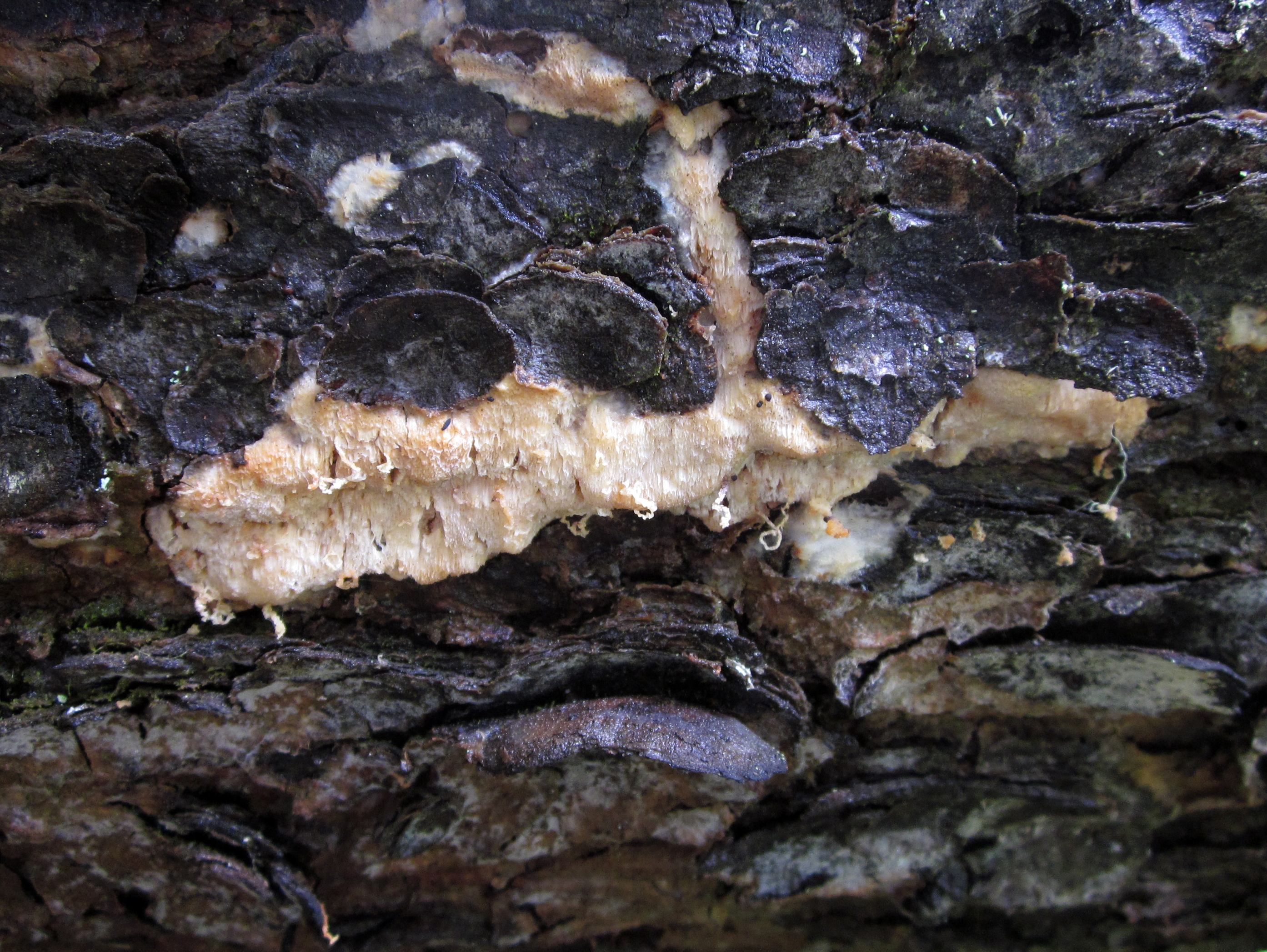 - Beskrivning: Skeletocutis odora, Svamp, fungi, svampdjur, spongier, ticka