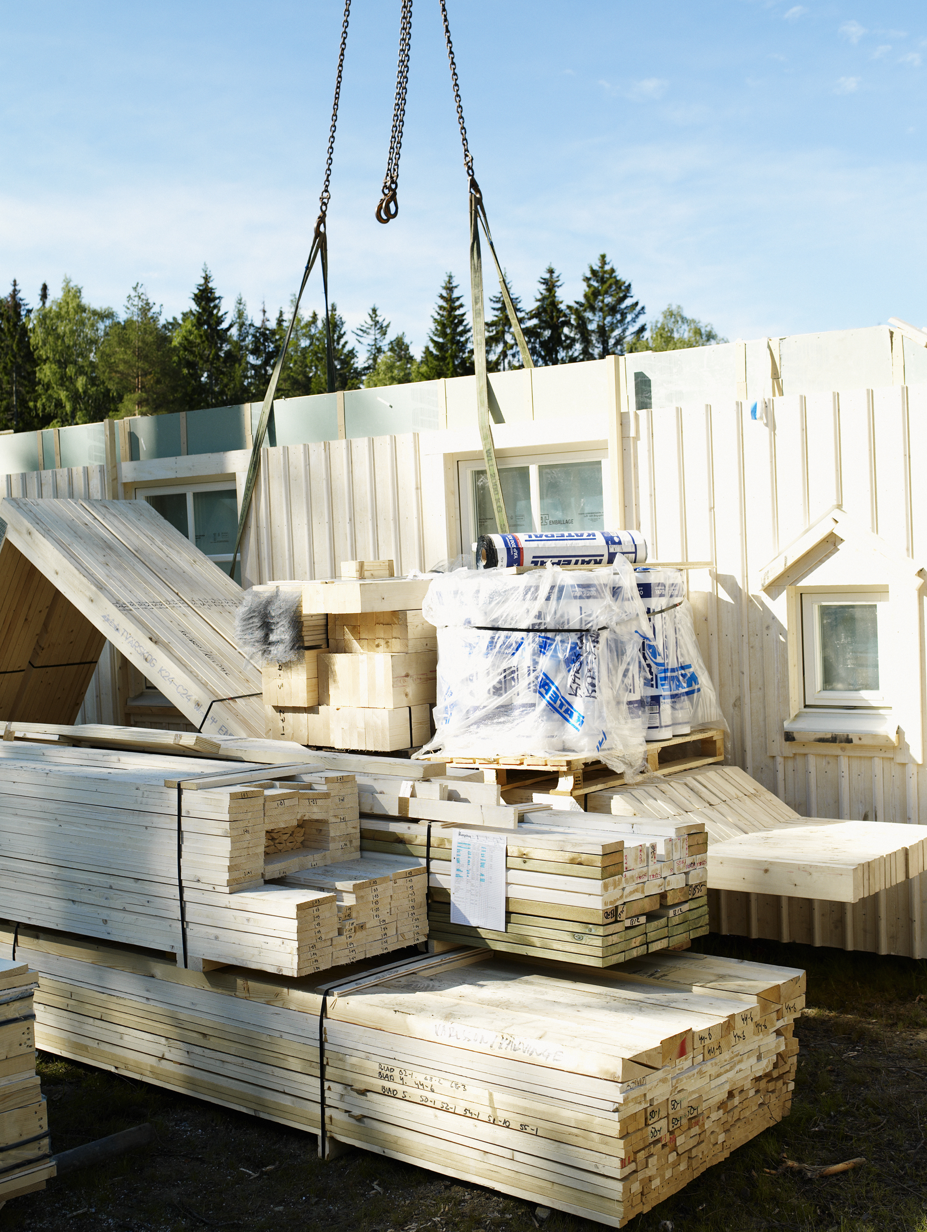 - Beskrivning: ny byggnad, byggande av ny bostad, hus, virke, slutanvändning av träråvara, trä, konstruktion