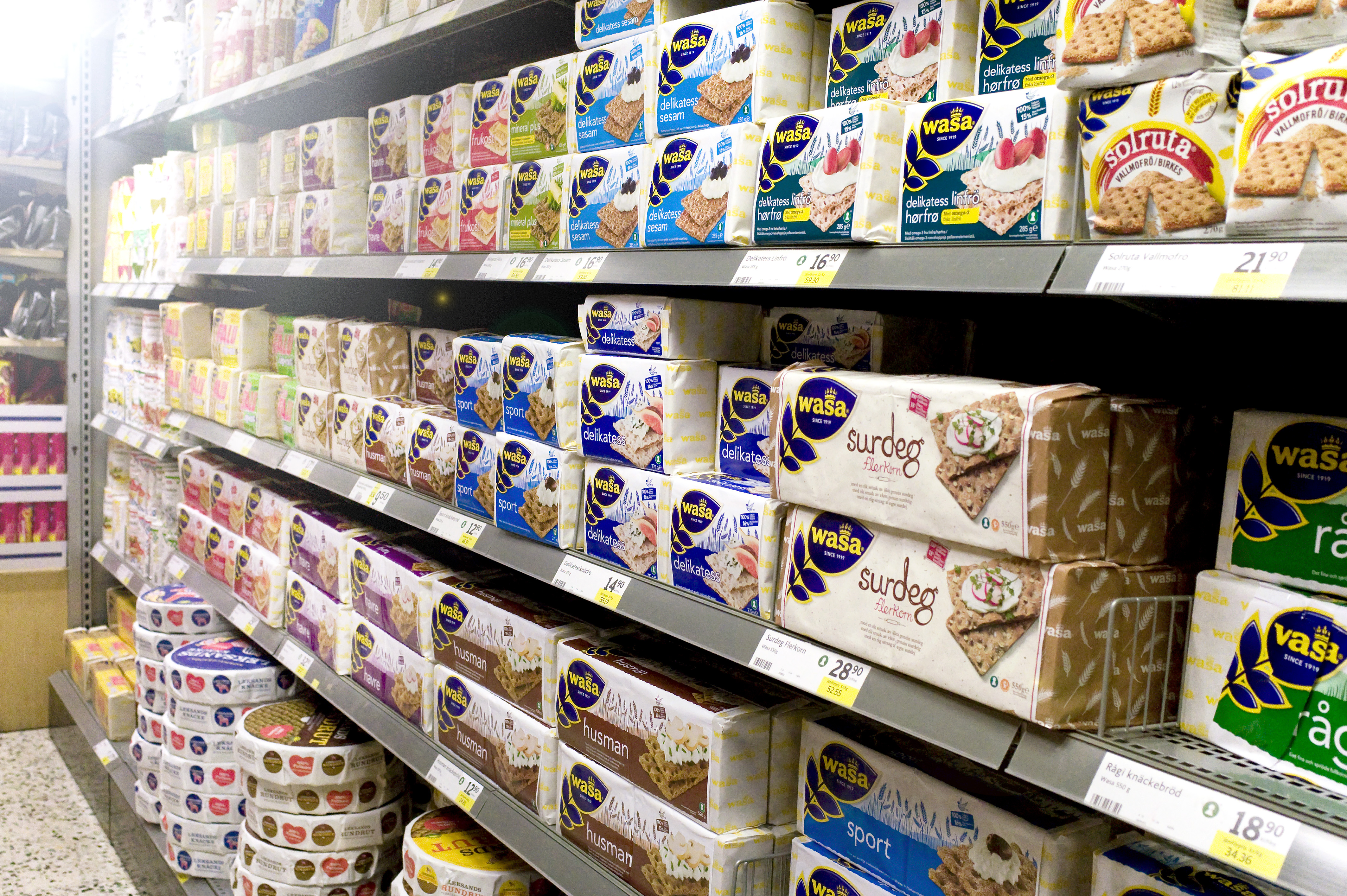 - Beskrivning: hårdbröd, knäckebröd, knäcke, wasa, frukost, Slutanvändning av träråvara, pappersförpackning, emballage, kartong, mat, förpackning, paket, produkt, affär, hylla, olika produkter