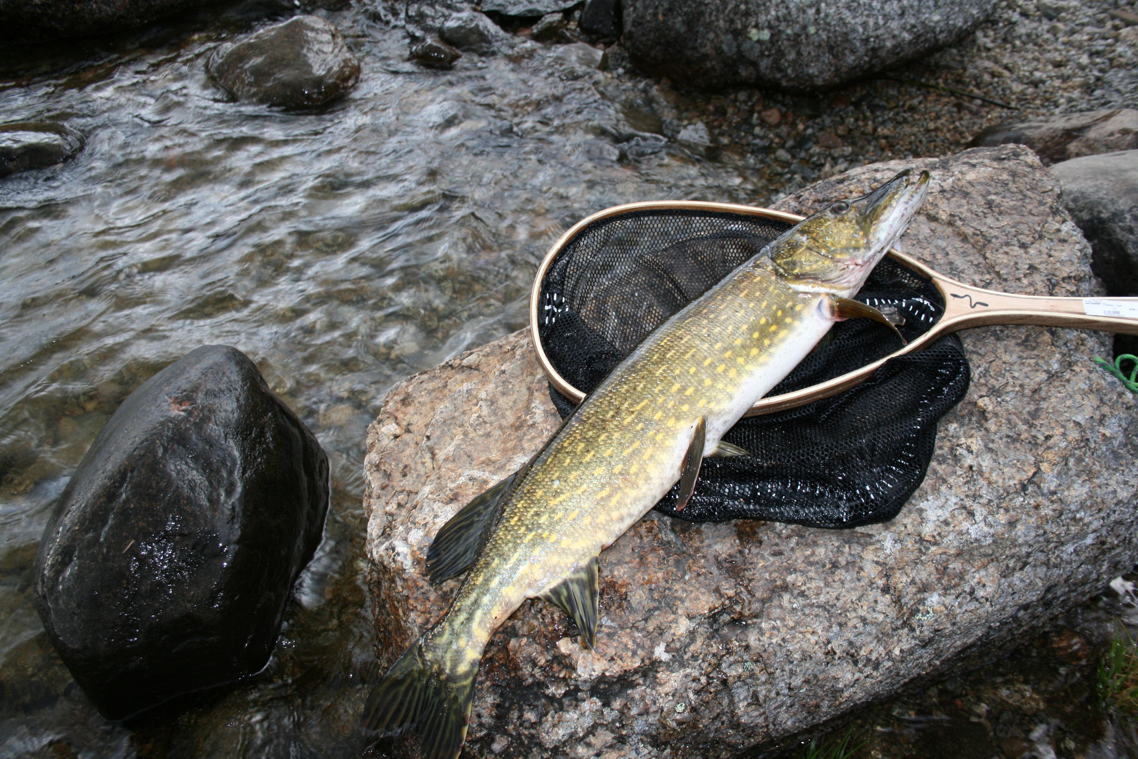 - Beskrivning: fisk, fångad, på sten, landad gädda