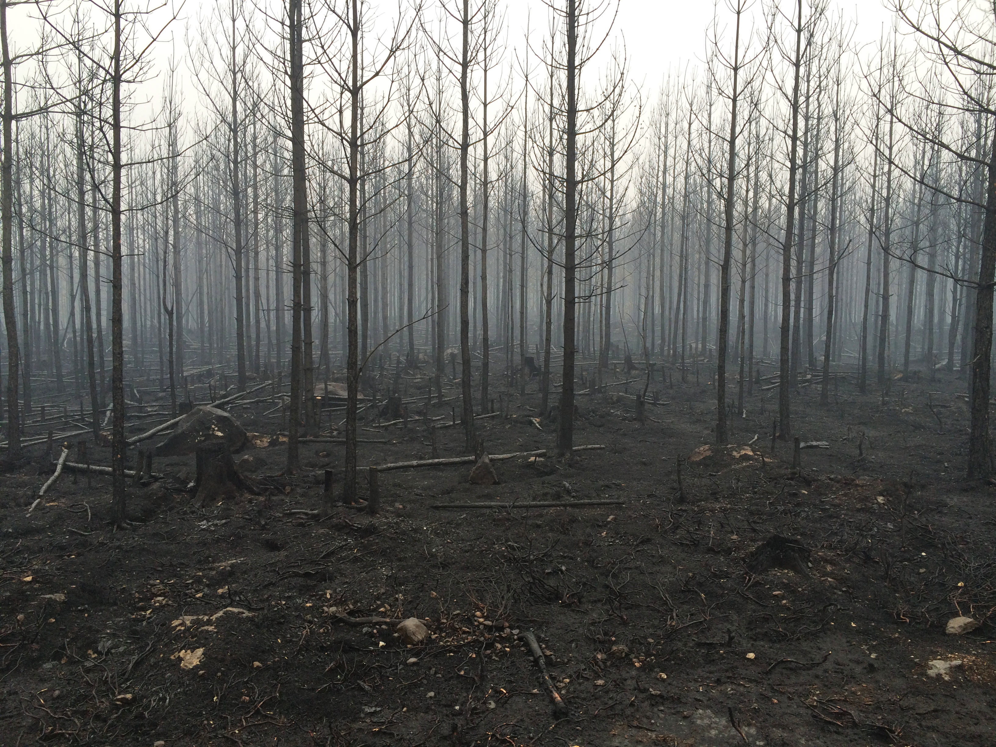 - Beskrivning: Skogsbrand, brand, aska, skog, nedbrunnen skog, aska, dramatisk, Västmanland