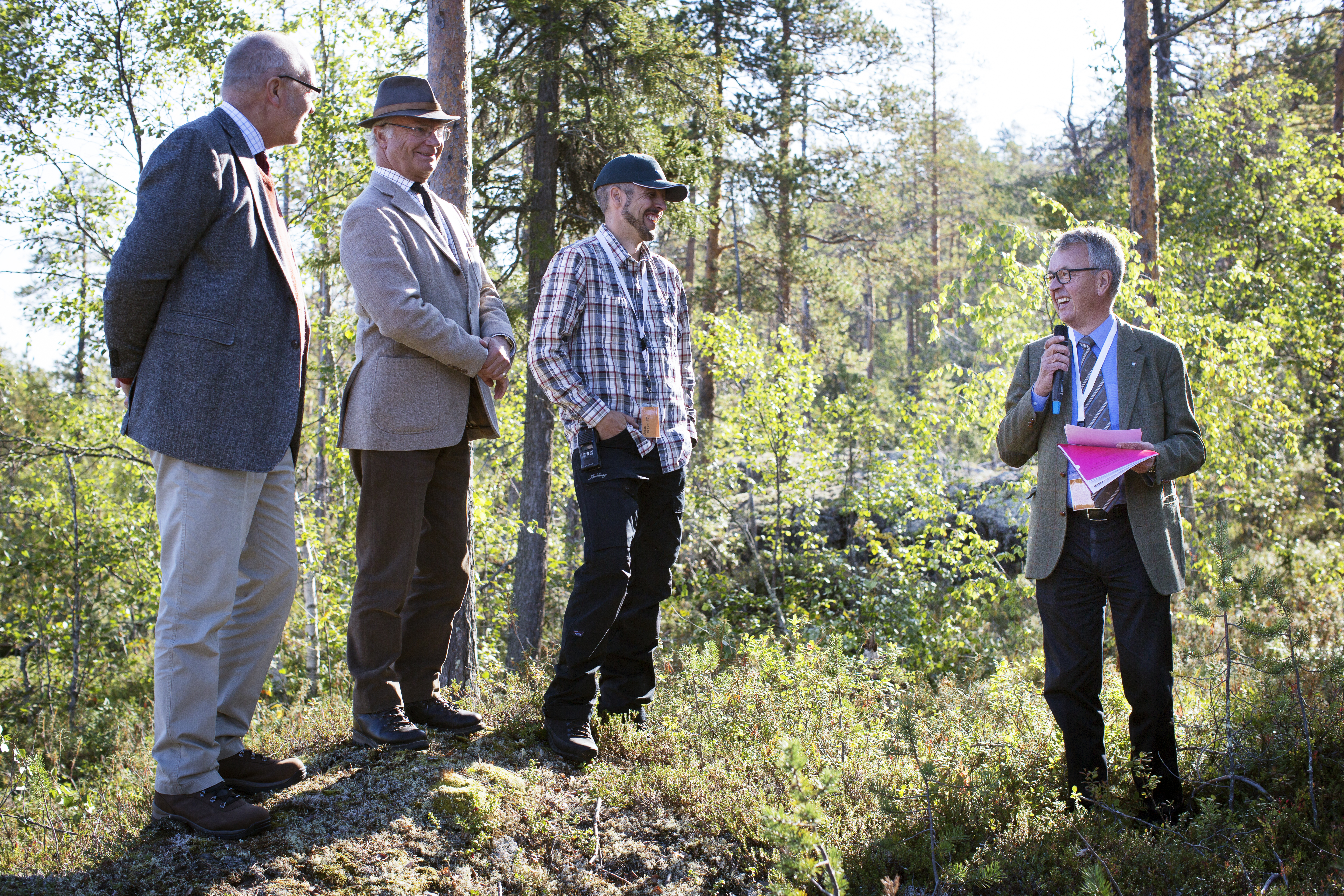 • Beskrivning: Norrbottens Landshövding Sven-Erik Österberg, Kungen, HMK Carl XVI Gustaf, Johan Ekenstedt och Per-Olof PO Wedin, vd, Invigning av Ekopark Piteälven och Varjisån