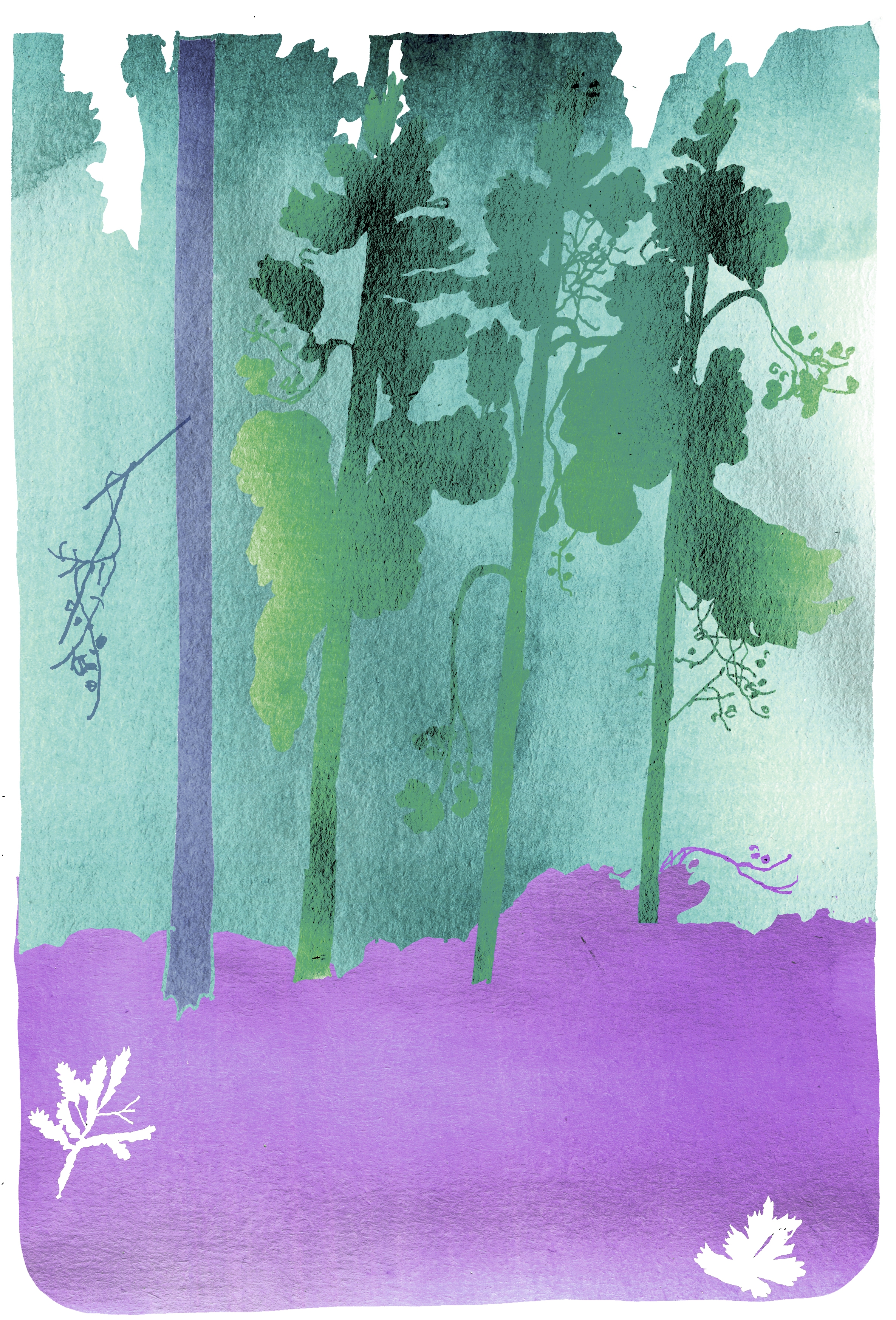 • Beskrivning: Spårlöst skogsbruk, akvarellbild som finns i några olika varianter, illustration, målning, vattenfärg