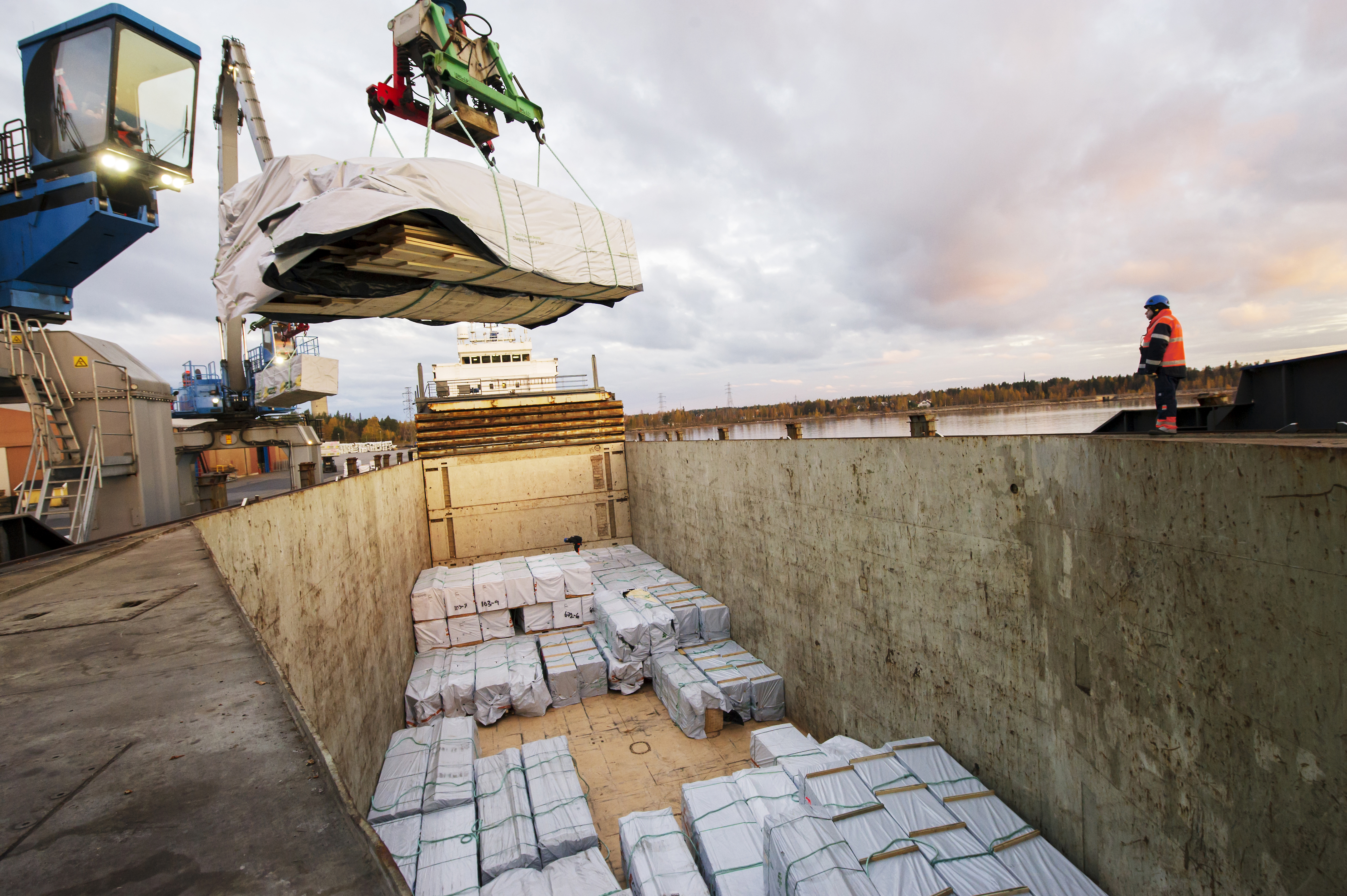 - Beskrivning: Lastfartyg, fartyg, båt, last, från Sveaskogs kalender 2016 Transport av virke, logistik, hamn