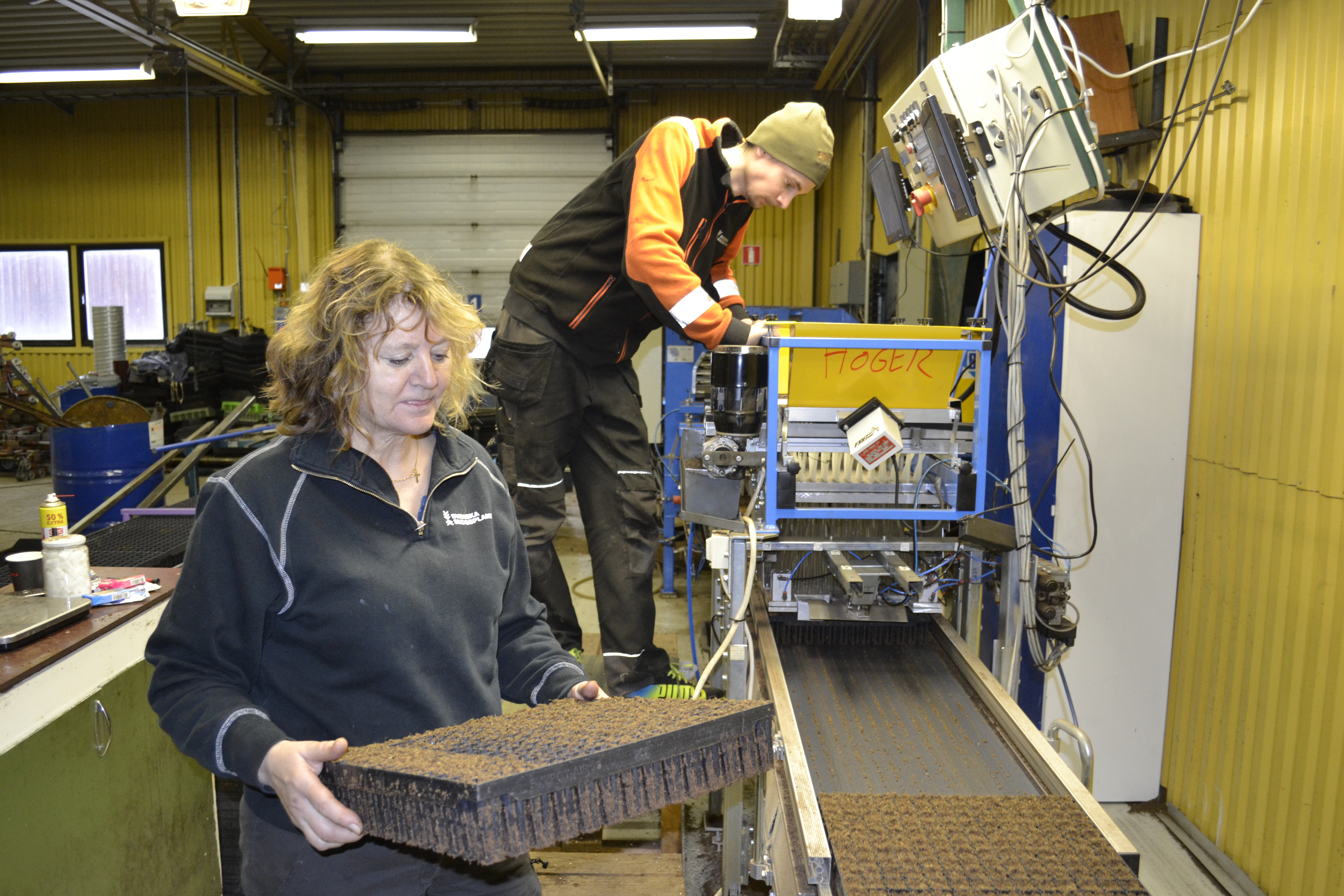 - Beskrivning: Lena Mähler och Patrik Mähler sköter såddmaskinen på Kilåmon med regelbundna kontroller.