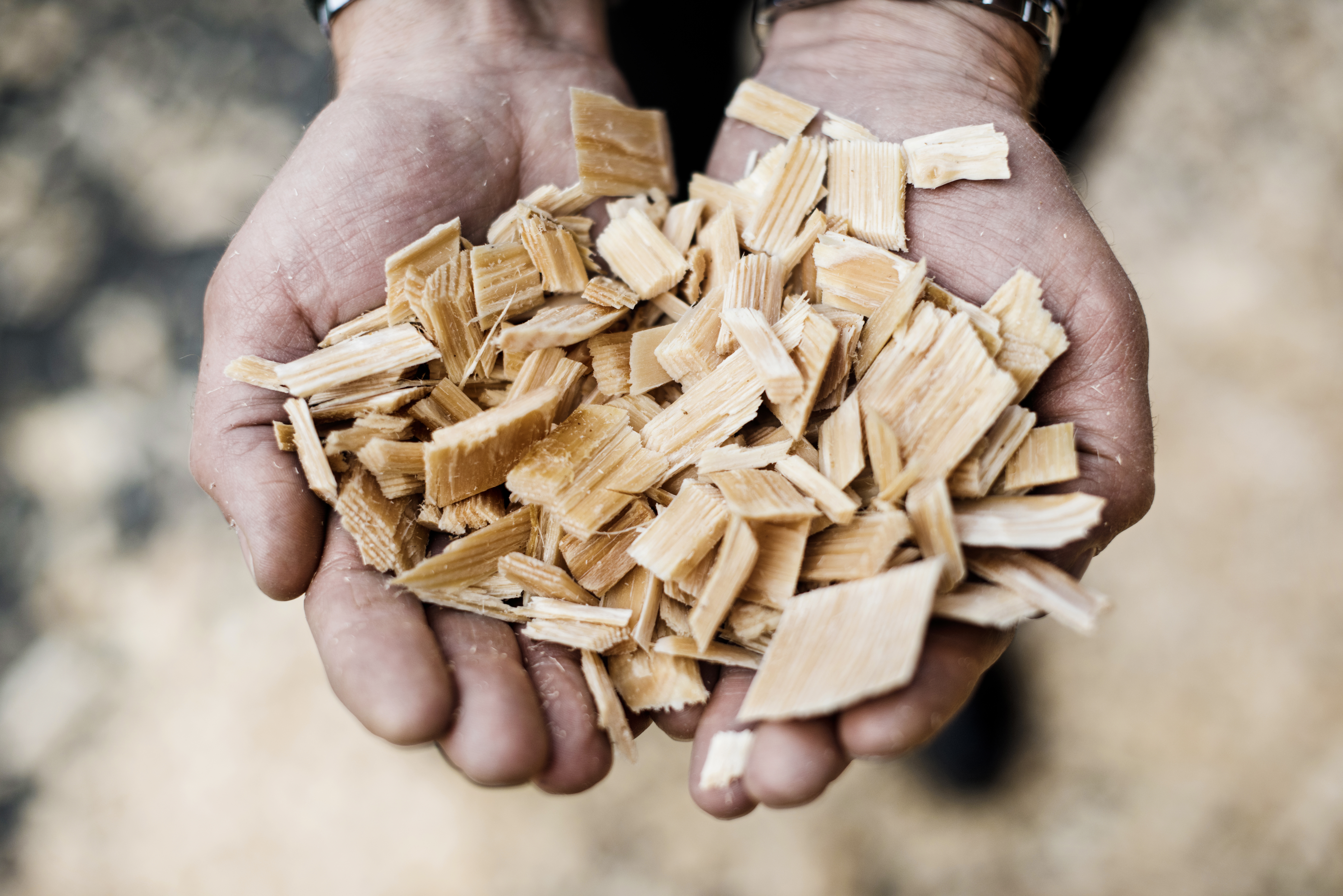 - Beskrivning: Biobränsle, i händer, Forum Sveaskog nr 2 2016, råvara
