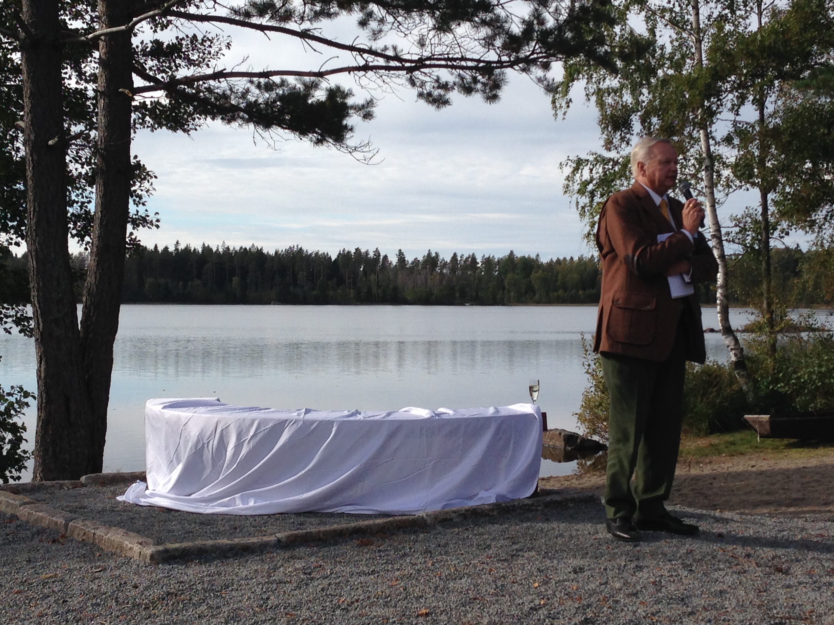 • Beskrivning: Carl-Jan Granqvist avtäckte stenbänken, Invigning av Ekopark Öjesjöbrännan, vår 37:e ekopark