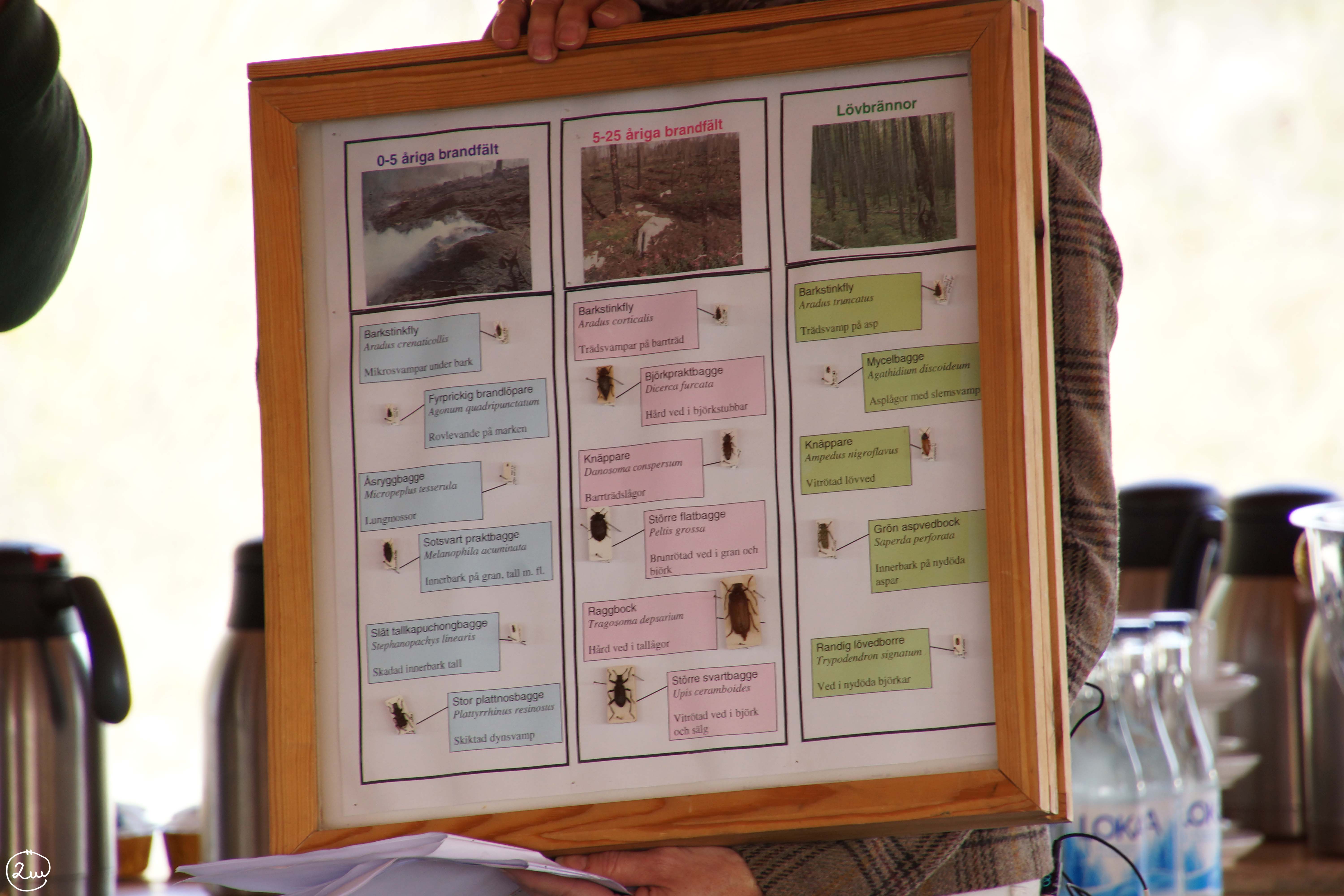 - Beskrivning: Olika typer av insikter som trivs efter brand, brandområde, brandfält, lövbrännor, Invigning av Ekopark Öjesjöbrännan, vår 37:e ekopark, branddynamikens ekopark
