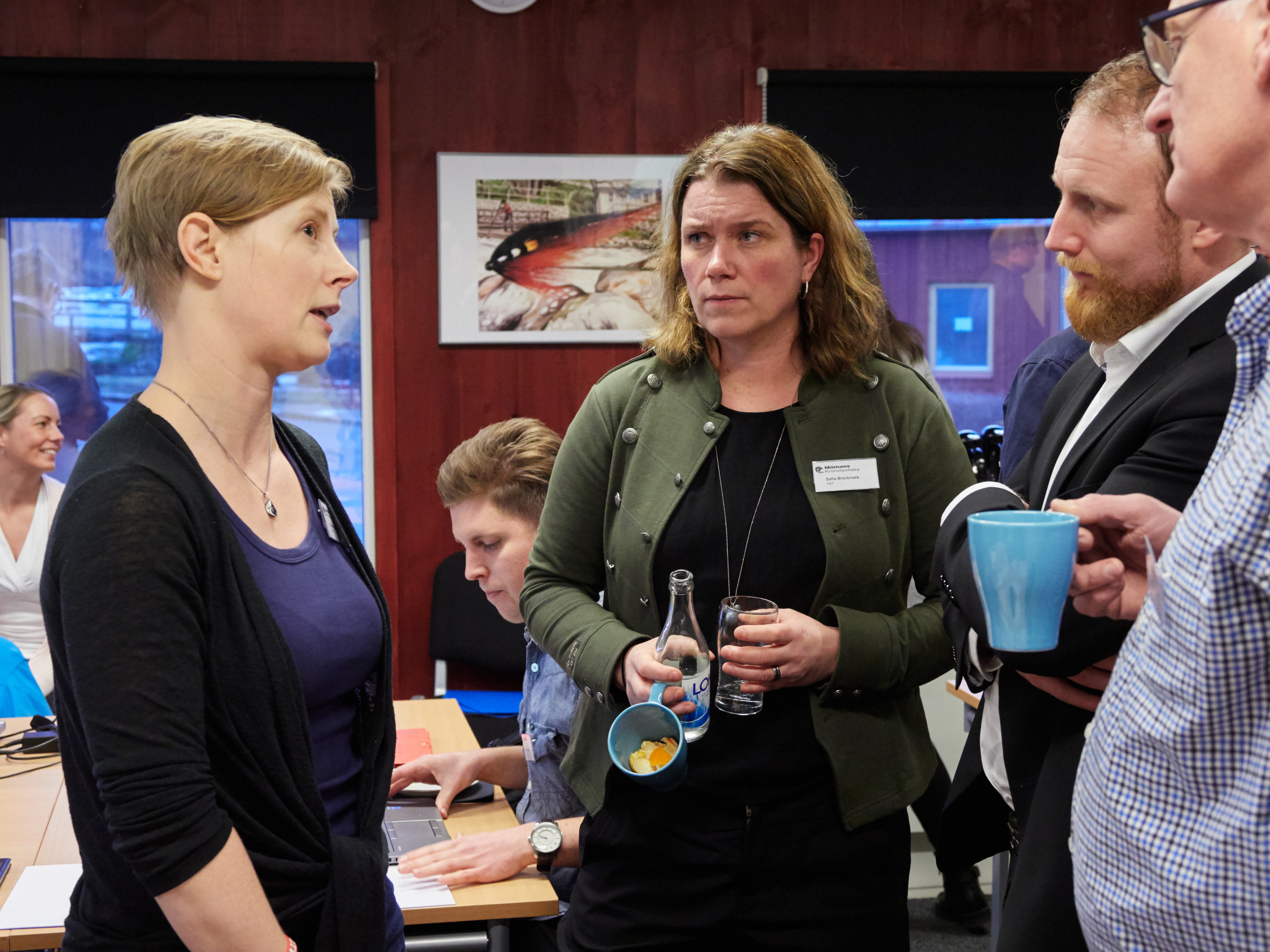 • Beskrivning: Charlotte Axén statsveterinär SVA Sofia Brockmark HaV Magnus Andersson Näringsdepartementet, Laxdöden i fokus i Mörrum, Sveaskogs seminarium "Samling kring Östersjölaxens status och situation i Mörrum" den 24-25 januari, Östersjöns laxförande älvar och åar har drabbats av olika dödliga symptom de senaste tre åren, mingel