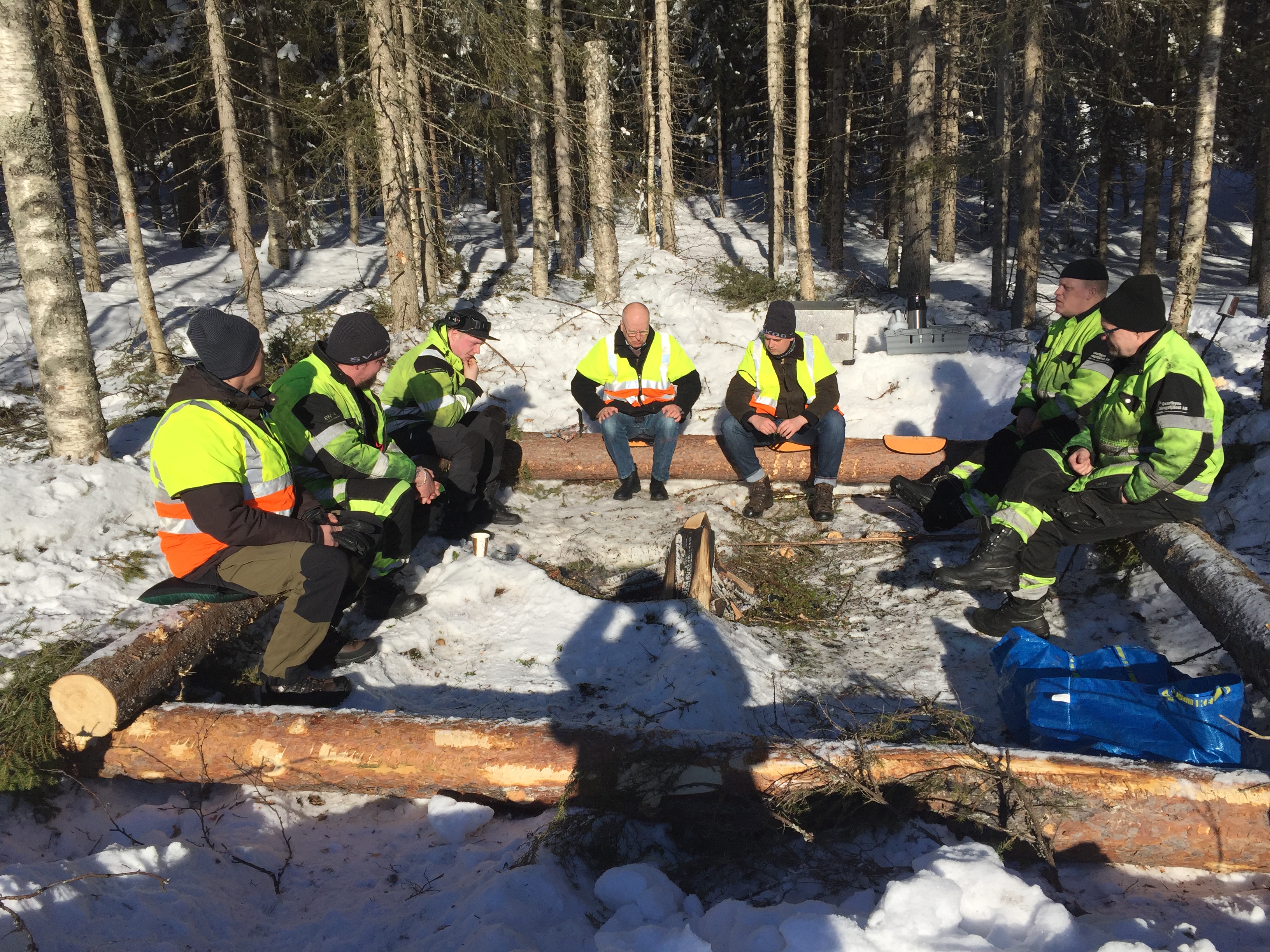 - Beskrivning: Avverkningsledare Håkan Hökfors tillsammans med lag 2533 från Svartbyns skogsmaskiner; Per Erik Waara, Ingemar Sparrman, Linus Johansson och Mikael Johansson. Felicia Johansson ingår också i laget. Bengt Börjesson och Matthias Markwort, inköpsansvarig import från Ilim, Timmerleverans till Tyskland, grantimmer, leverans, I mitten av mars gick för första gången någonsin en båt från Haraholmen i Piteå lastad med grantimmer för leverans till Wismar i Norra Tyskland