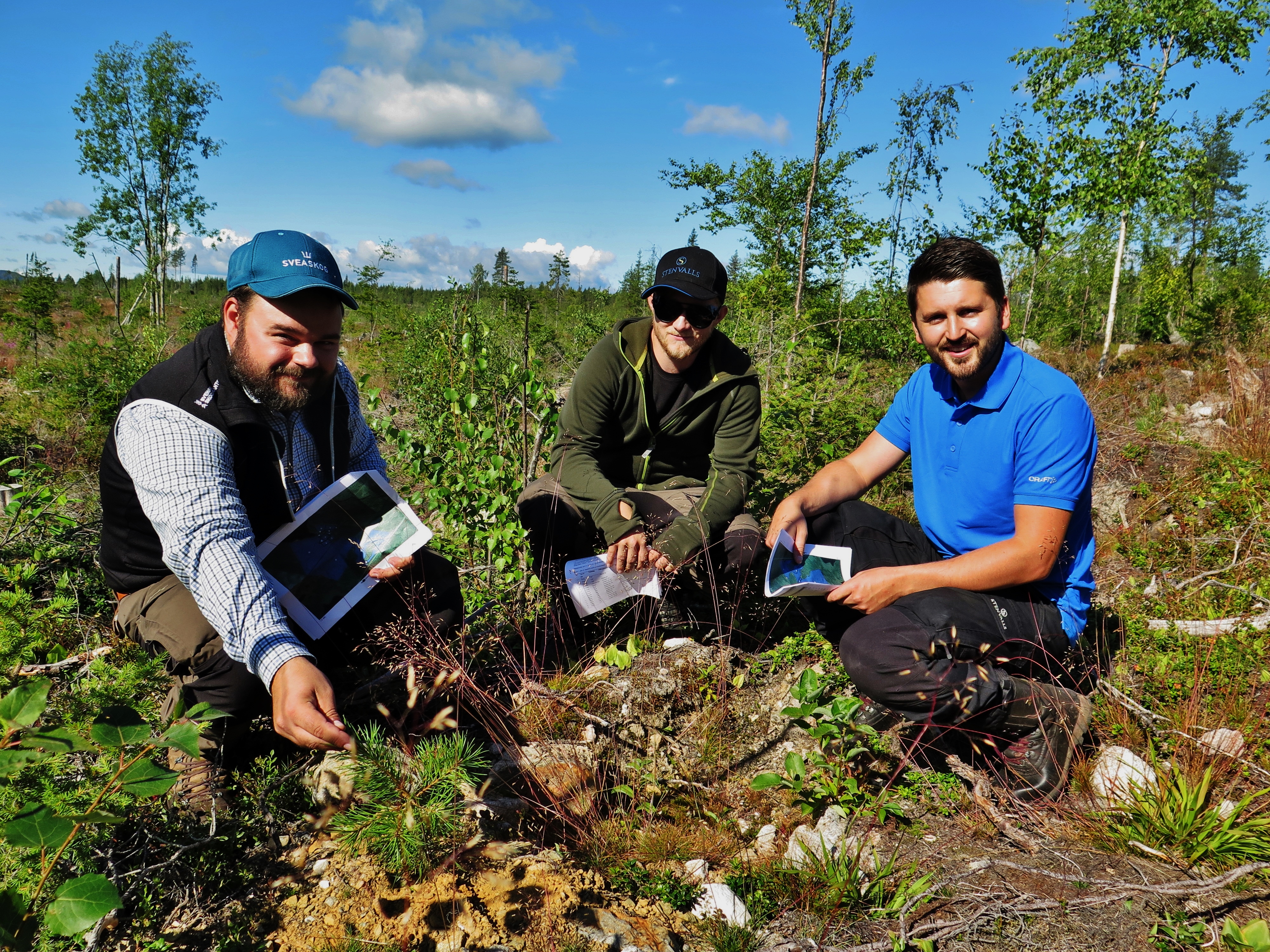• Beskrivning: Tomas Jansson, Filip och Emil, Från Pressmeddelande: Elitfröer ger upp till 25 procents extra tillväxt på hygget, svenska skogsplantor, tillsammans med Stenvalls trä