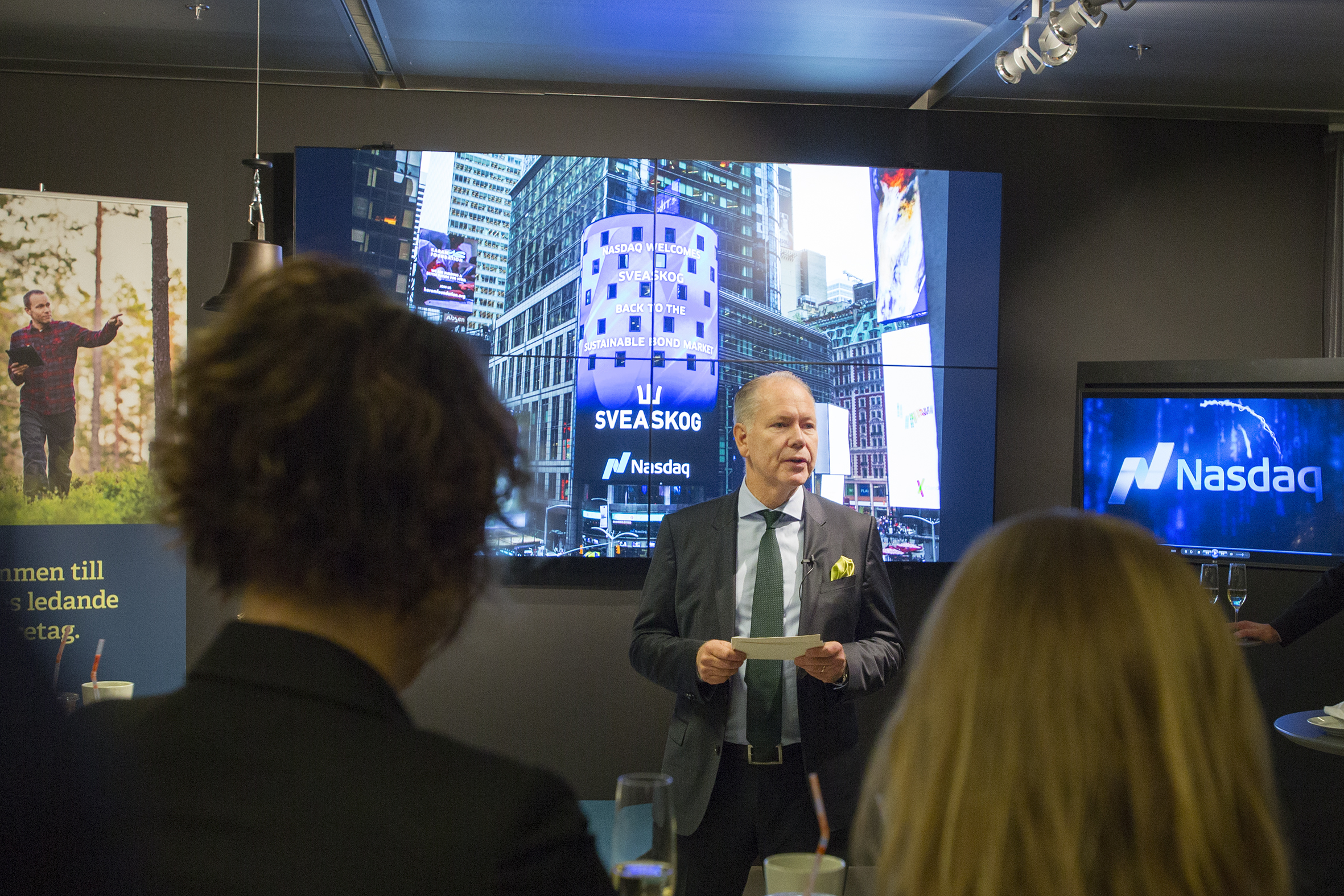 - Beskrivning: inringningen av Sveaskogs andra gröna obligation på Nasdaq den 27 oktober 2017, grön obligation