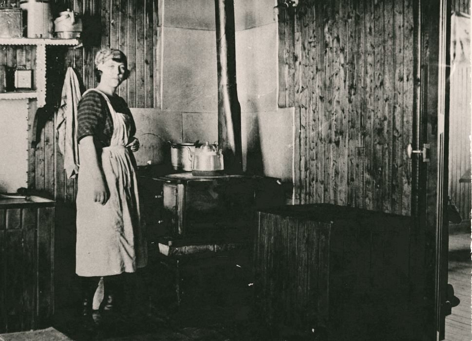 - Beskrivning: Kvinnor i skogsbruket genom historien, bild från skogsmuseets arkiv, bild från förr, svartvitt foto, inskannat foto,