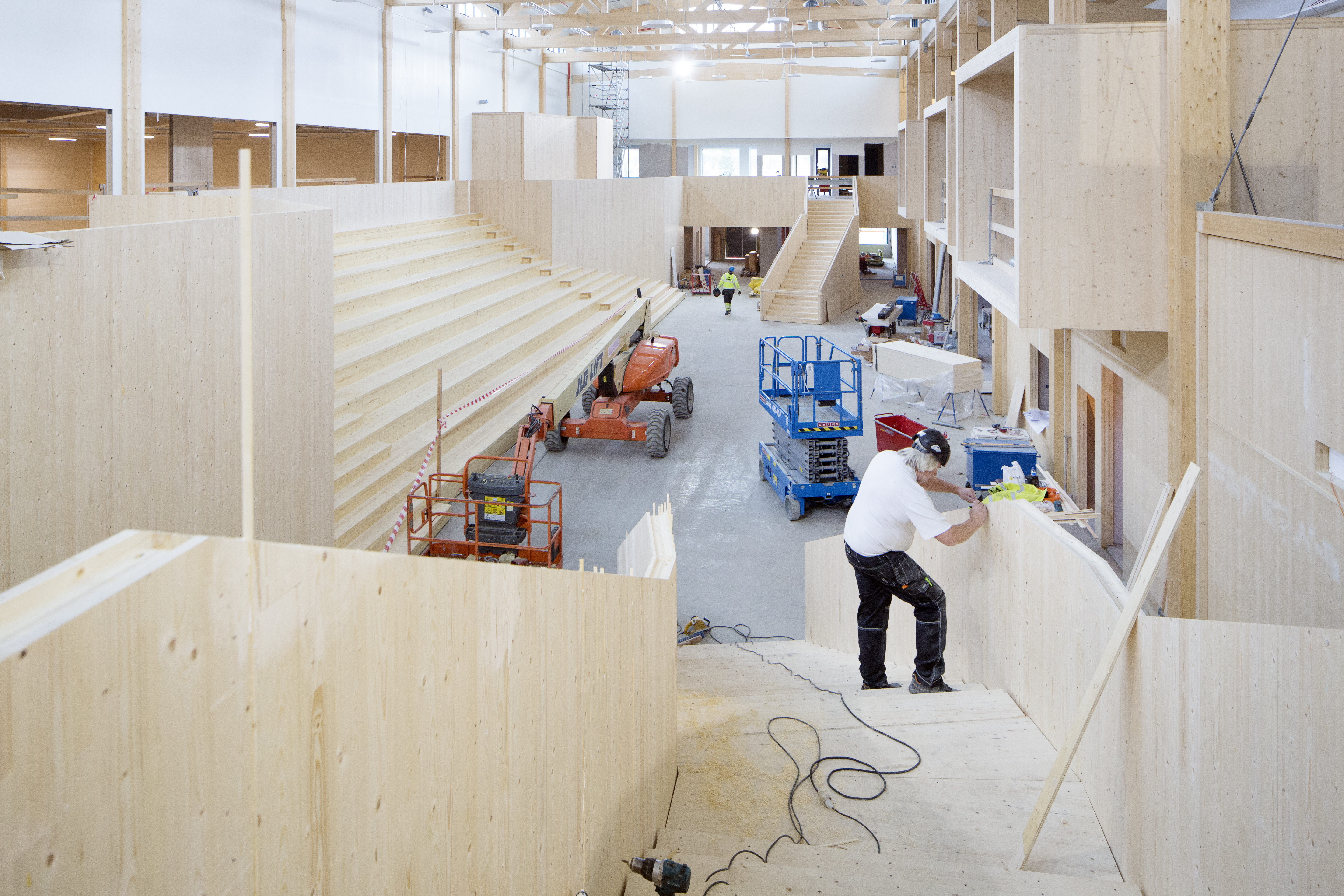 - Beskrivning: Bygge av ny högstadieskola i Skellefteå. Morö Backe skola, Martinsons, trähus, kund Träbyggande, KL-trä, limträ, klimatsmart