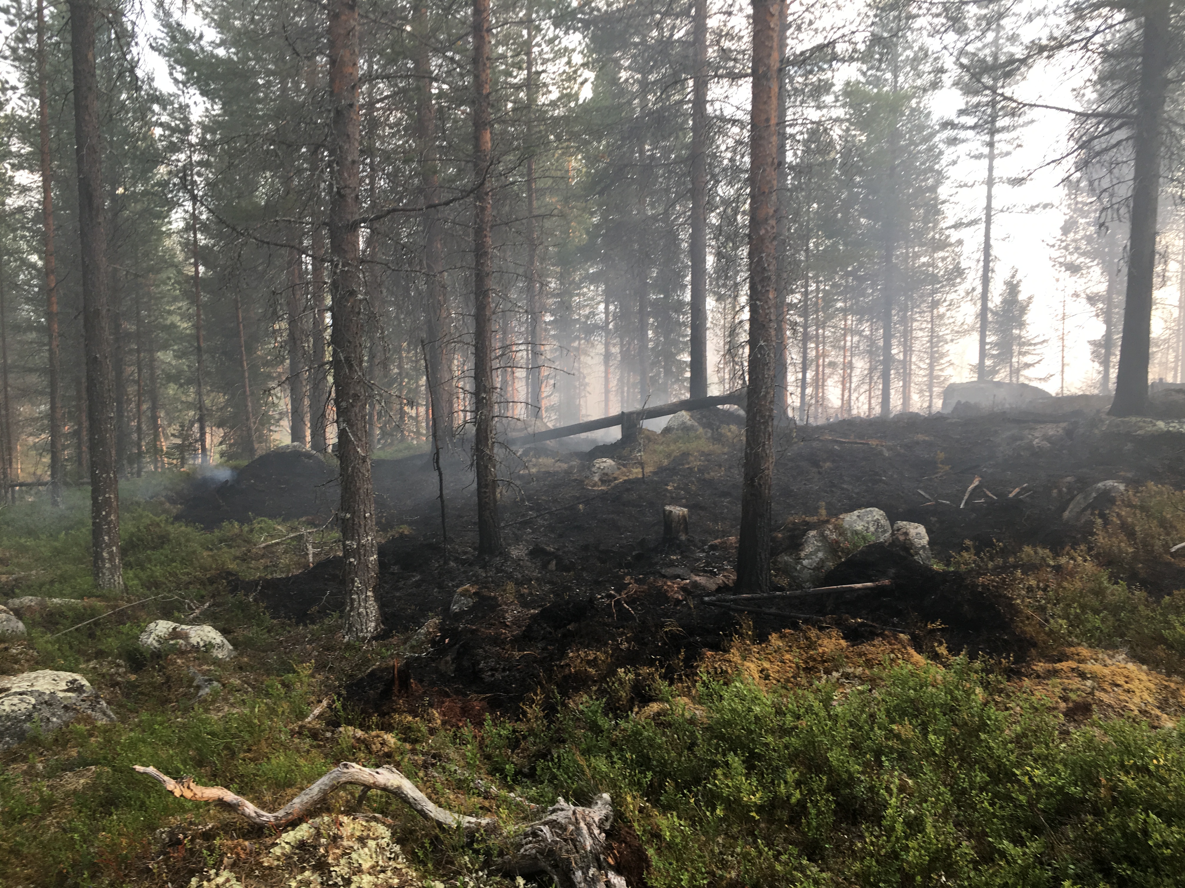 • Beskrivning: Efter skogsbränderna 2018, skogsbrand, efter brand, Buktesberget, eftersläckning
