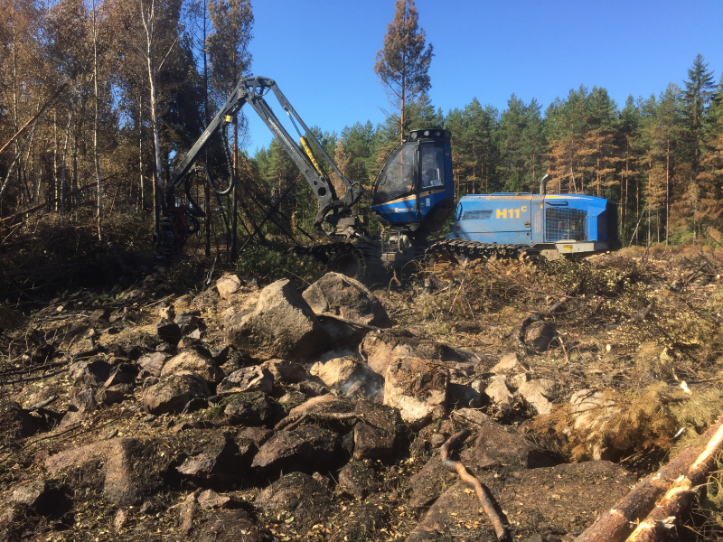 - Beskrivning: Efter skogsbränderna 2018, skogsbrand, efter brand, eftersläckning, Efter Kostabranden, aska, nedbränd skog