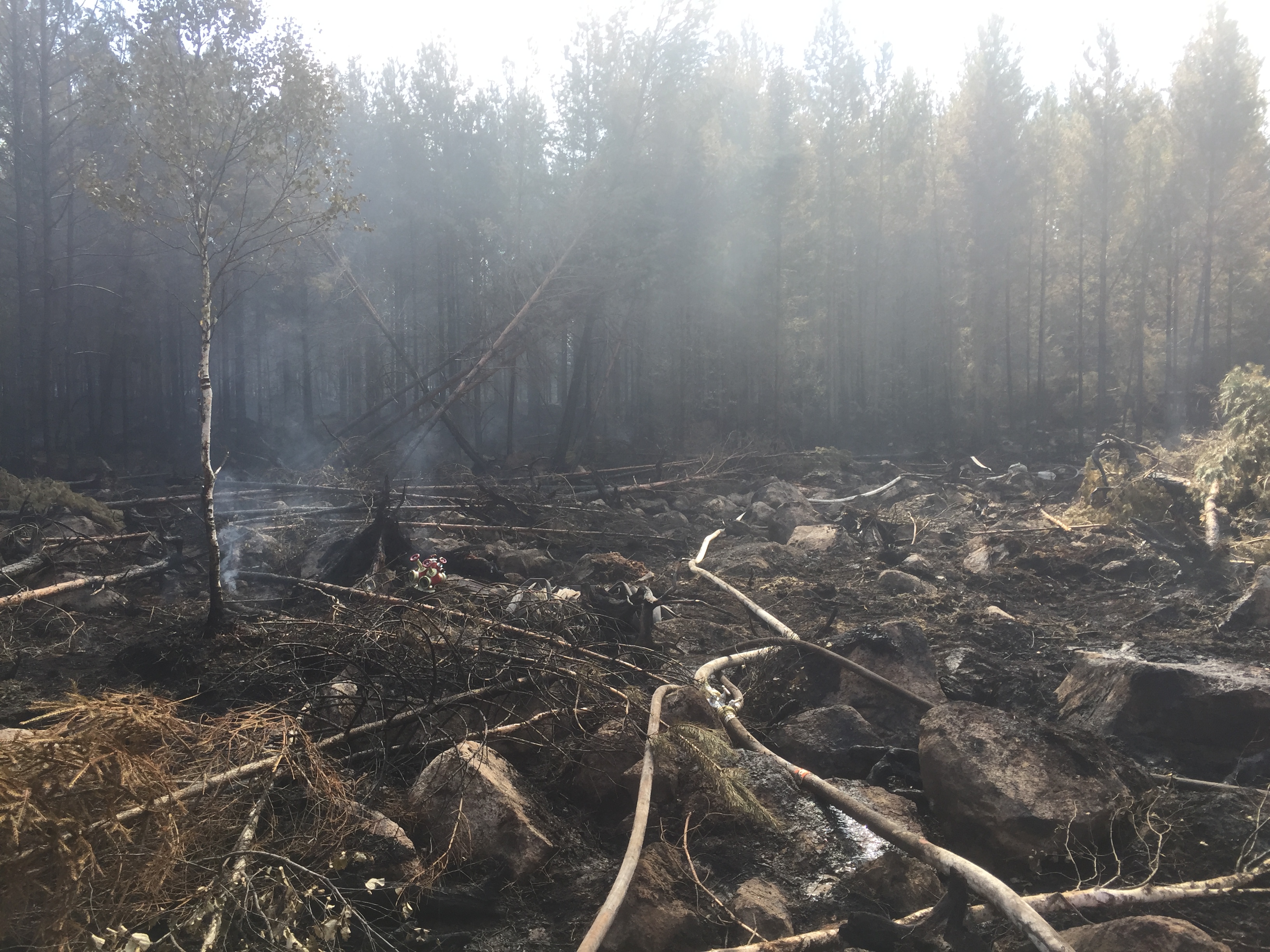 - Beskrivning: Efter skogsbränderna 2018, skogsbrand, efter brand, eftersläckning, Efter Kostabranden, aska, nedbränd skog