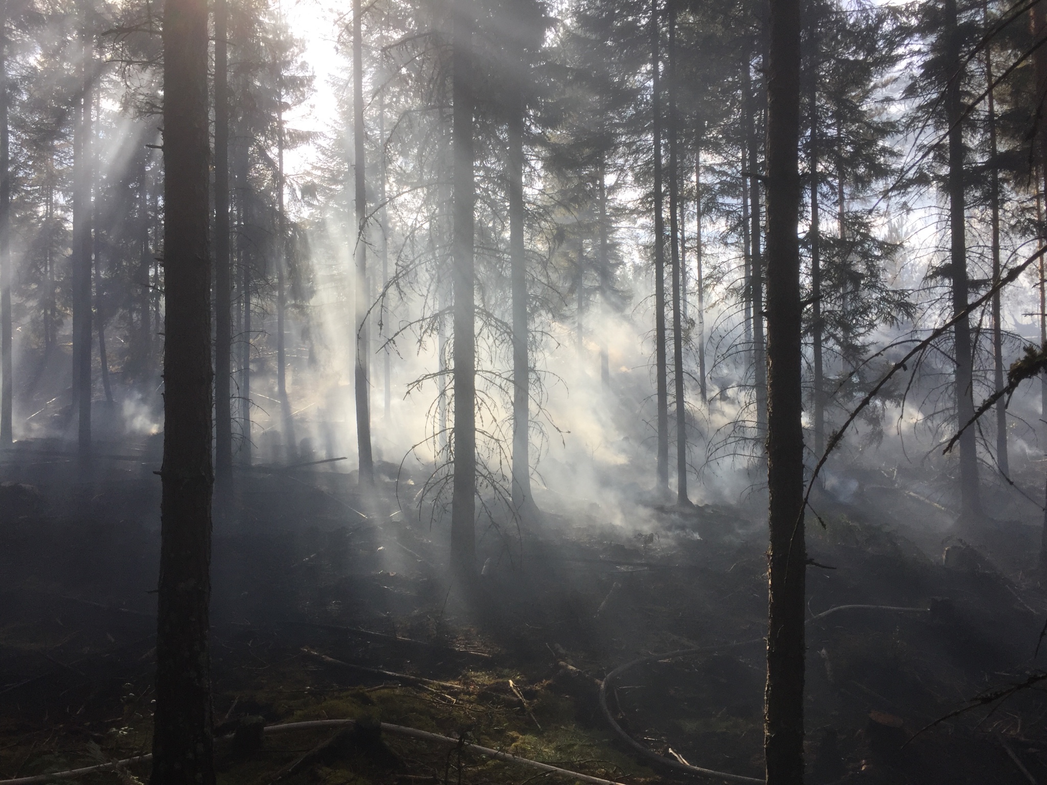 - Beskrivning: Efter skogsbränderna 2018, skogsbrand, efter brand, eftersläckning, Efter brand i Lessebo, aska, nedbränd skog, släckning