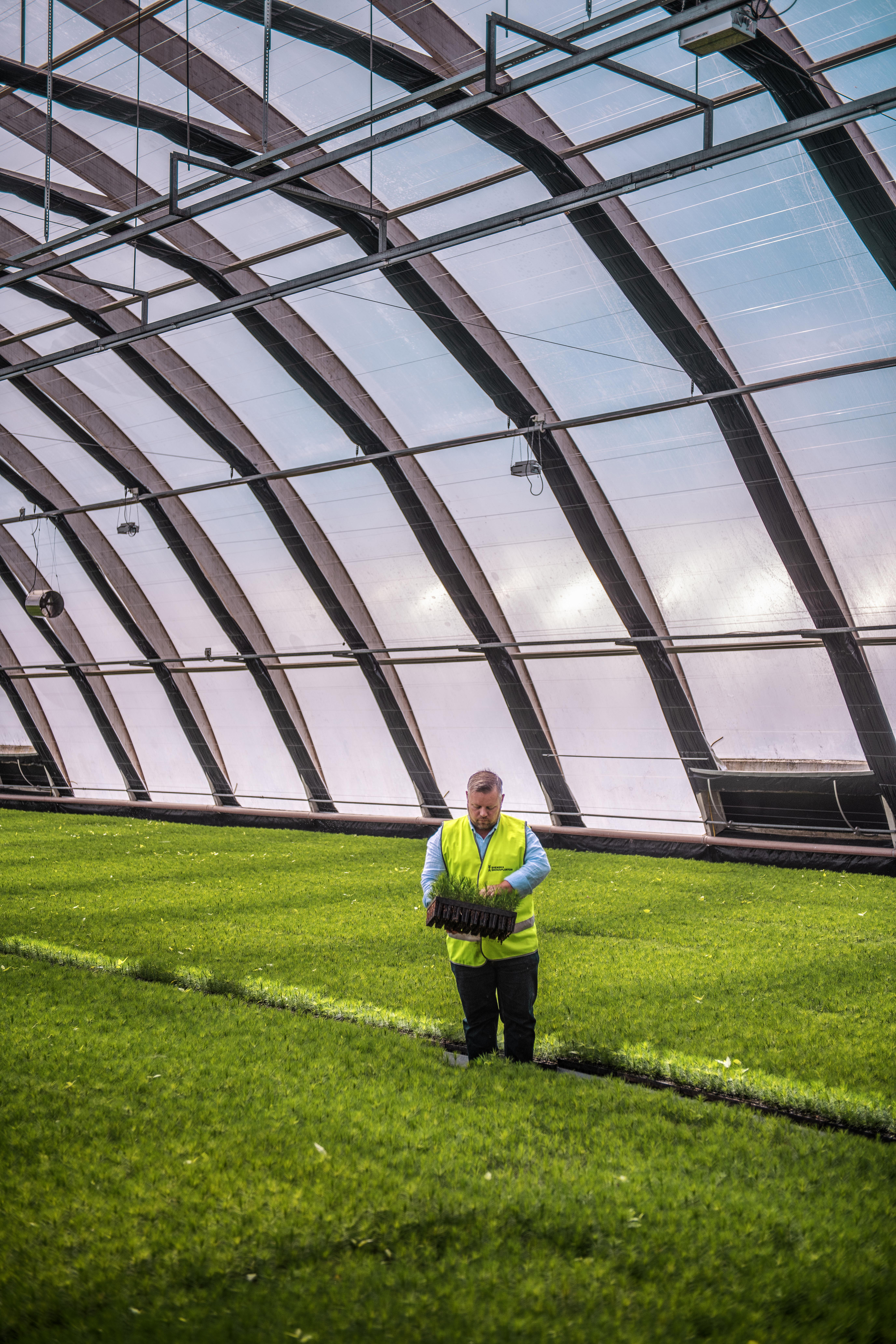 - Beskrivning: Forum Sveaskog, SSPS har installerat pelletseldade värmepannor, plantageget i Vibytorp, växthus, plantskola, plantering, planta, plantor