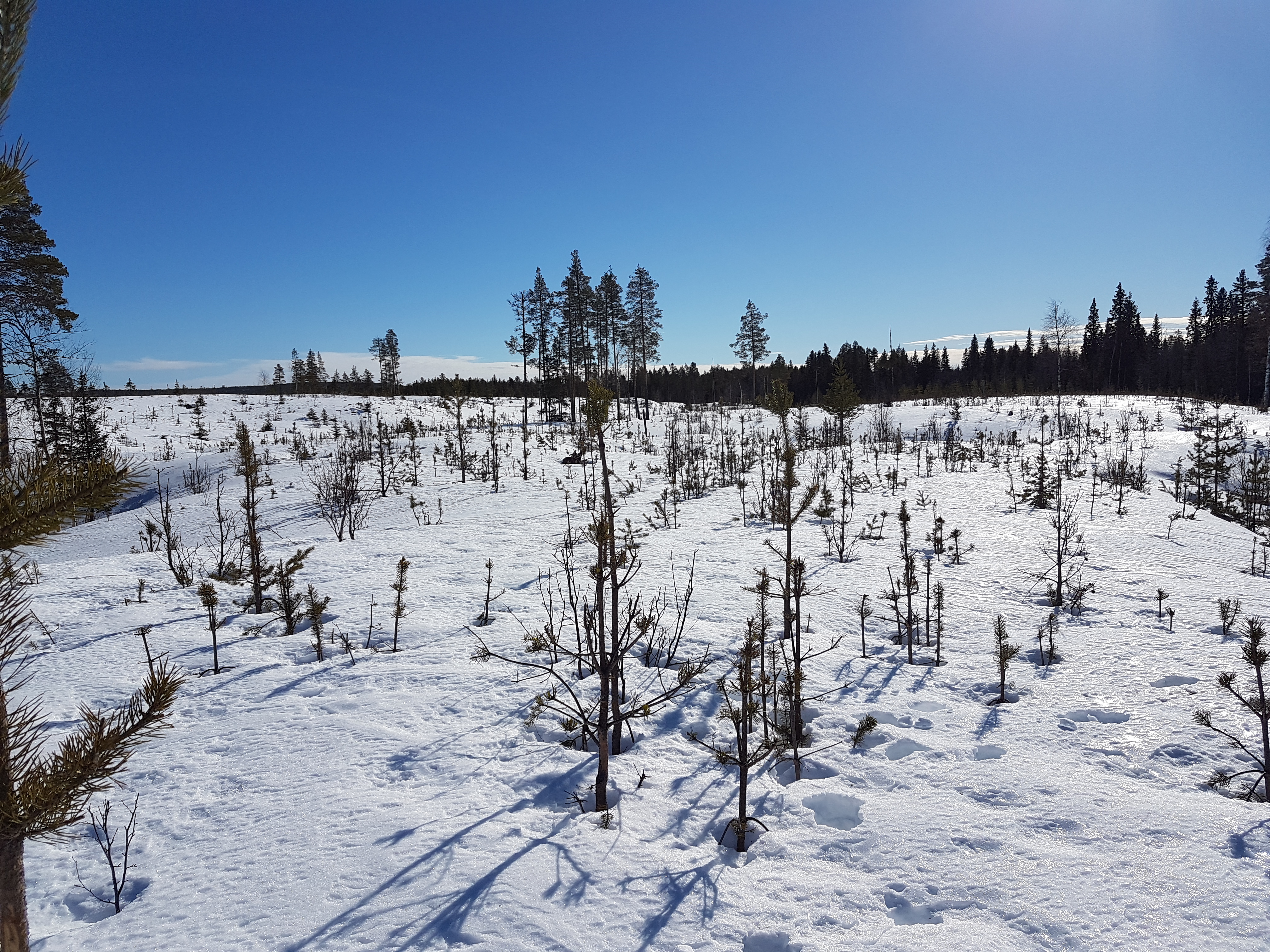 • Beskrivning: Betesskador på tallplantor. Bilden är tagen vid Rämjaurliden.