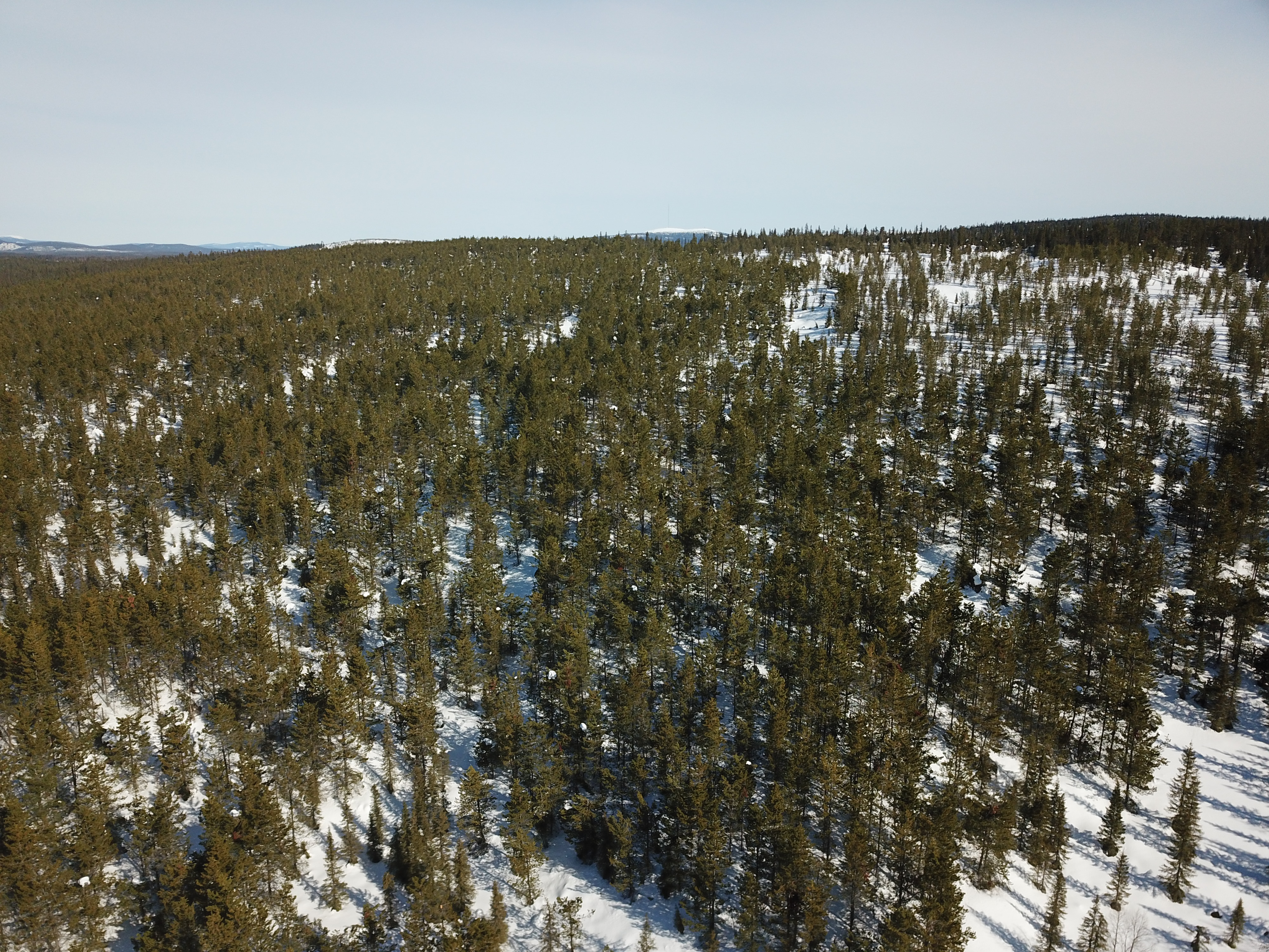 - Beskrivning: Fastighetsobjekt som låg till försäljning på Sveaskog.se i början av Mars 2020, Arjeplog Nyliden, ovanifrån, landskap, skogslandskap, vy, skog, vinter