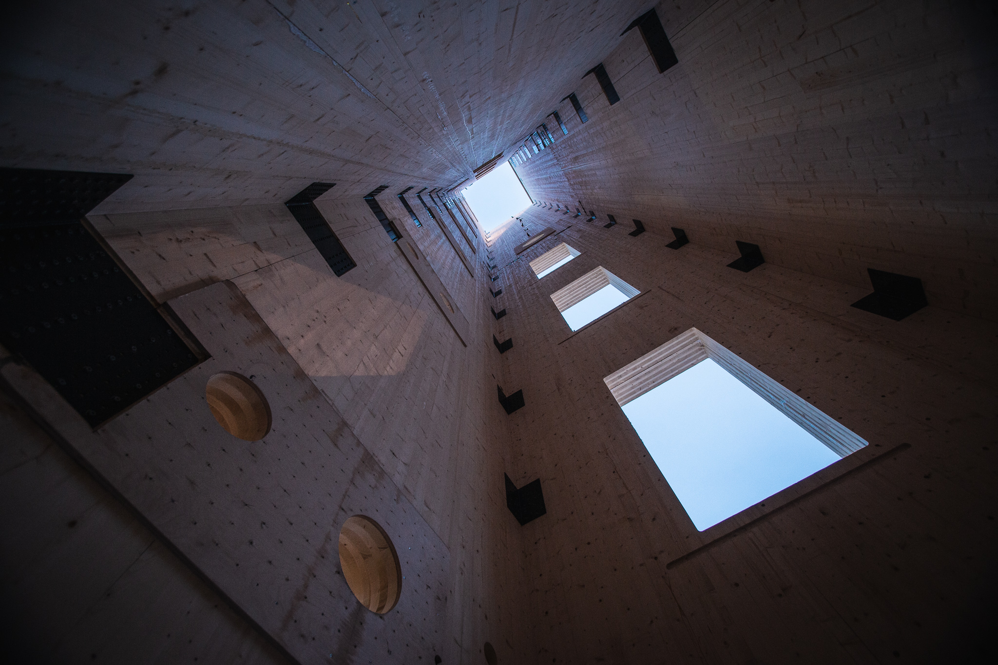 - Beskrivning: Det blivande hissschaktet i hotelldelen vid Sara Kulturhus. Här endast 35 meter som i slutändan ska bli över 70.