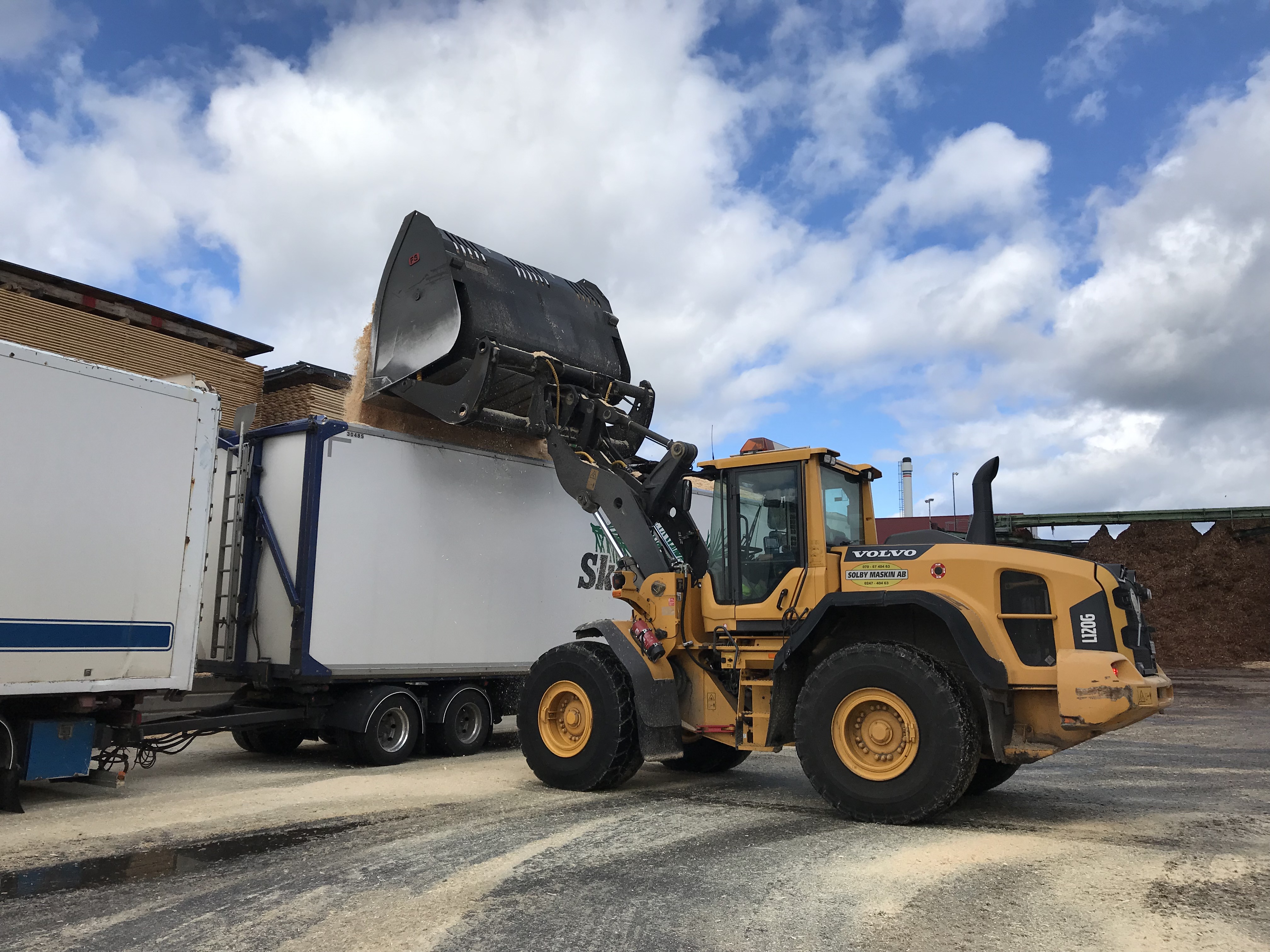 - Beskrivning: Besök hos Bergkvist Insjön 2019-05, produktion, produkt, sågverk, traktor, traktorskopa