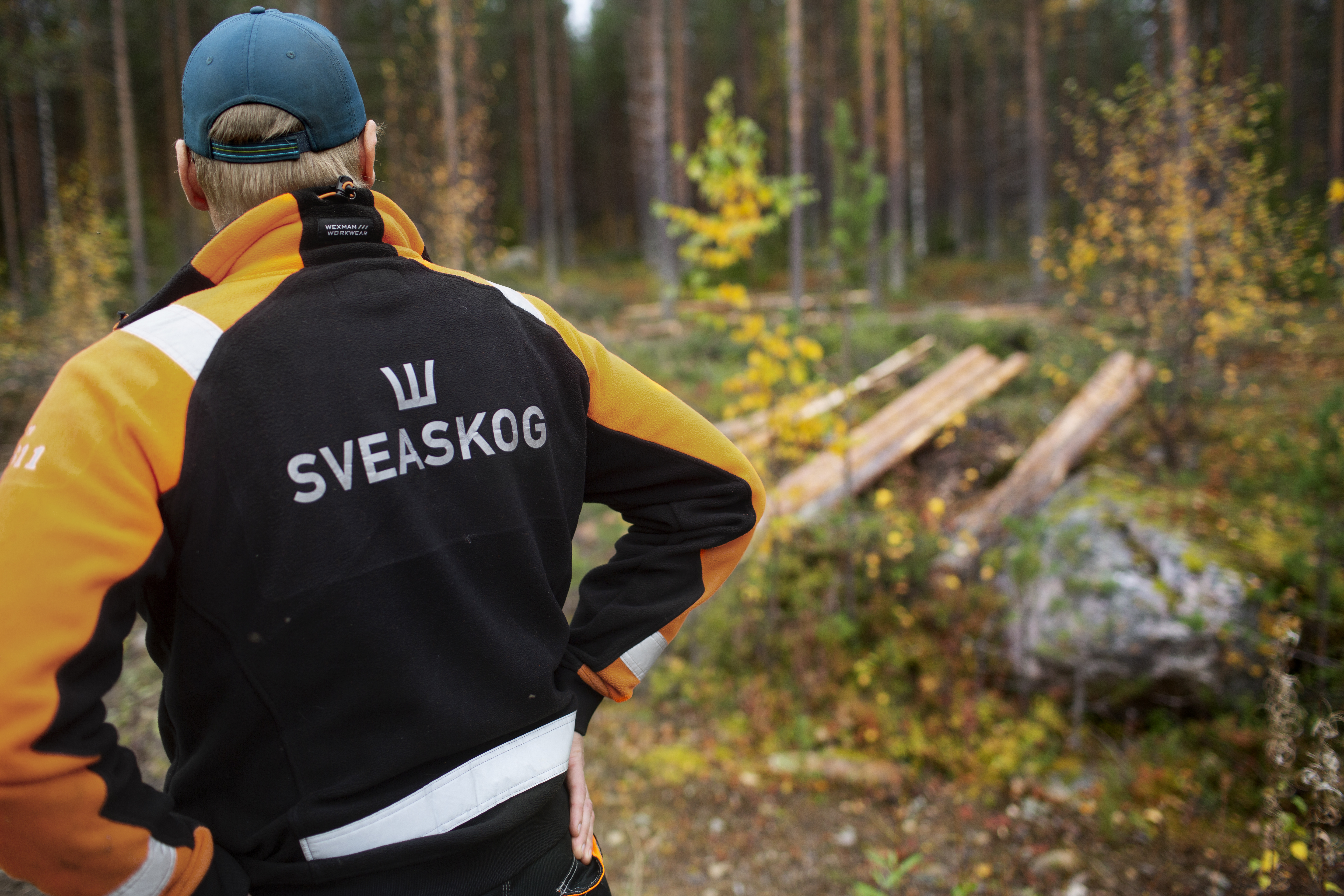 - Beskrivning: Arbetskläder, skogsarbete, Sveaskogs logotyp