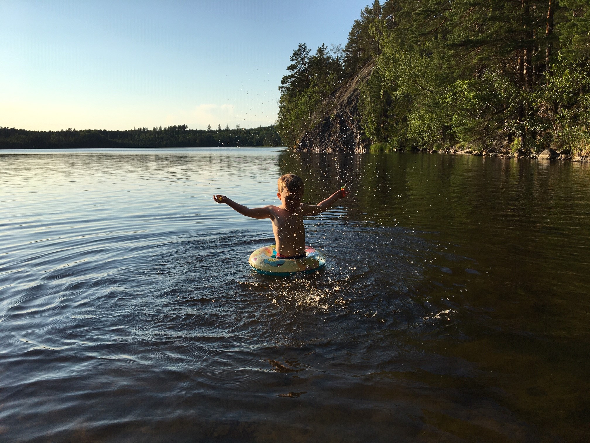 • Beskrivning: Bad i sjön Skiren, Åtvidaberg. Barn som badar