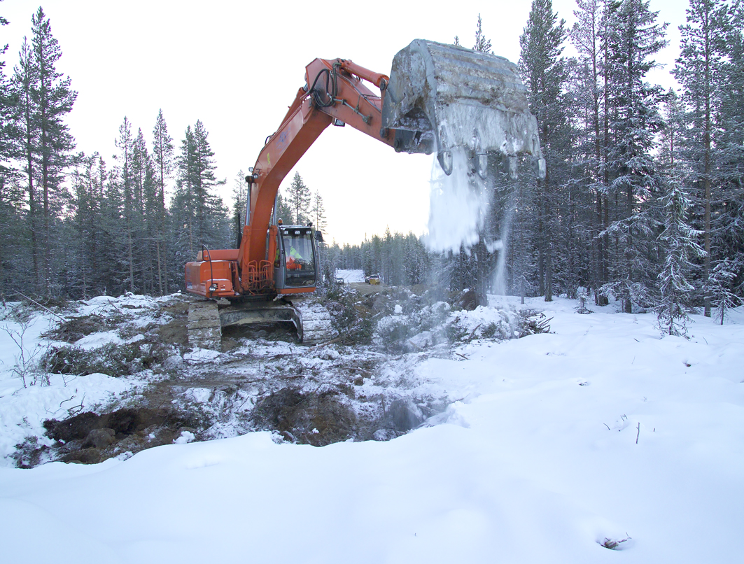 • Titel: Grävmaskin vid brytning av ny skogsbilväg