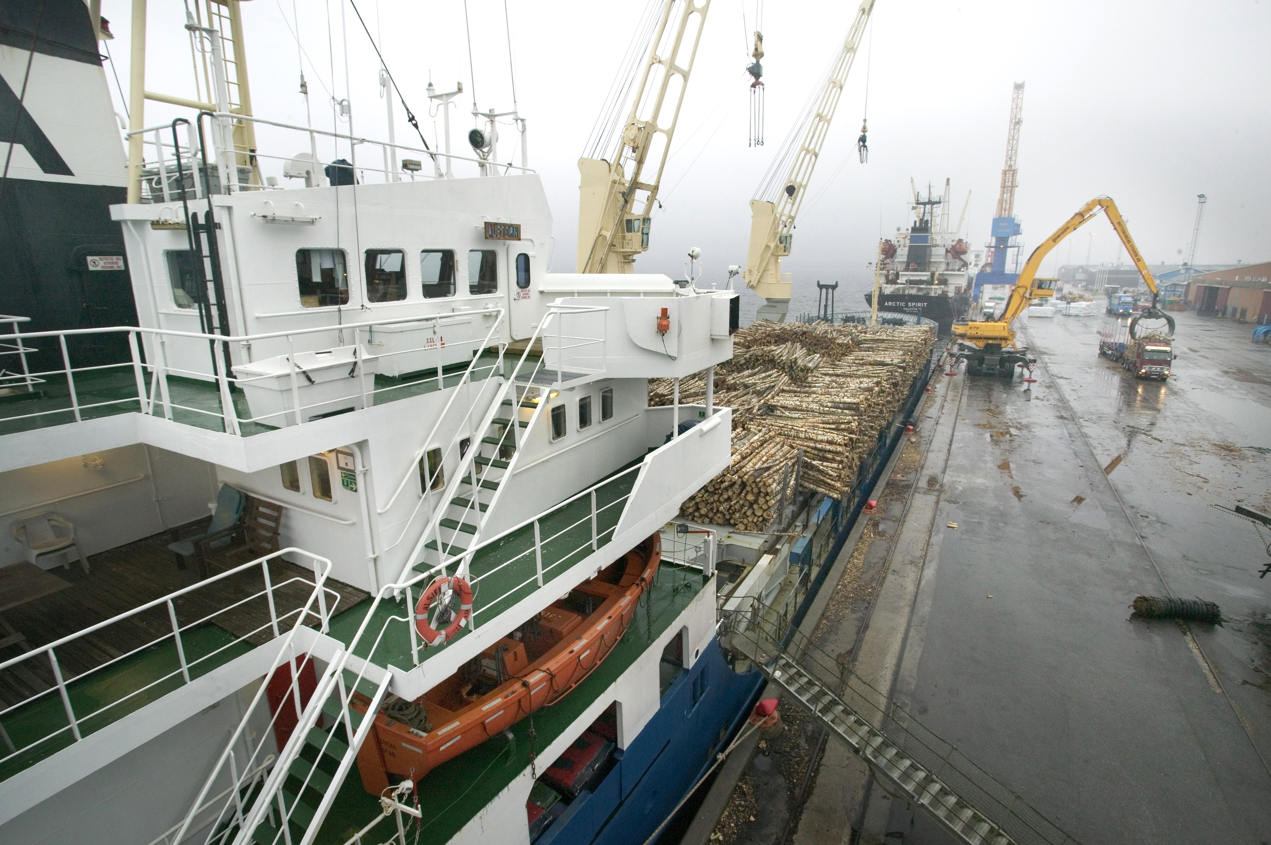 - Beskrivning: Lossning av virke från båt för vidare transport till kund. Hamn: Haraholmen, Piteå