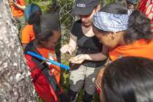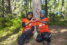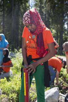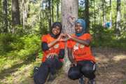 Titel: Unga tjejer kör simulering av skogsmaskin