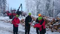 Beskrivning: Robert Kloos, P-O Wedin, Herman Sundqvist med flera, Sveaskog gästades av den tyske statssekreteraren för jordbruk Dr. Robert Kloos, samt representanter för Näringsdepartementet. Exkursion, skogsbesök, fältbesök, studiebesök, besök i verksamheten, verksamhetsbesök