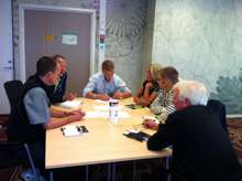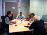 Beskrivning: Michael Wallberg, Peter Melin, Bo Ernstsson, Johan Oscarsson, Peter Bergman, Emil Fransson och Örjan Bilock, Hedersomnämnande i Årets förbättring 2014, Gala, fest, Aronsborg, konferens, möte, diskussion, ledarmöte, chefsmöte, ledardagar, prisutdelning