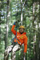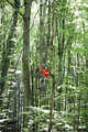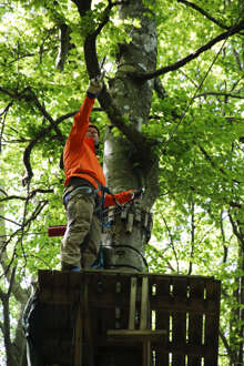 Beskrivning: Bushcraft handlar om att skapa verktyg i naturen. För att skona vegetationen tar Pathfinder School med sig slanor ut i skogen. Linda Marin slår ner en pinne med en träklubba hon tillverkat själv.