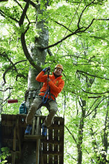 Beskrivning: Fredrik Svensson på Äventyr & Trails guidar i ekopark Halle- och Hunneberg.
