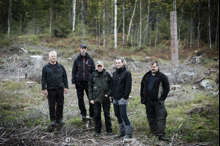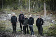Beskrivning: Gruppfoto Lars Risén, Jan Forsström, Fredrik Risén, Bror Olofsson och Anders Nenzén, Hyggligt avverkat, Forum Sveaskog nr 5 2013, vackert hygge, naturvård.
