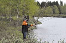 Beskrivning: Jakt, jägare, sjö, landskap, hund, natur, frihet, manlig jägare